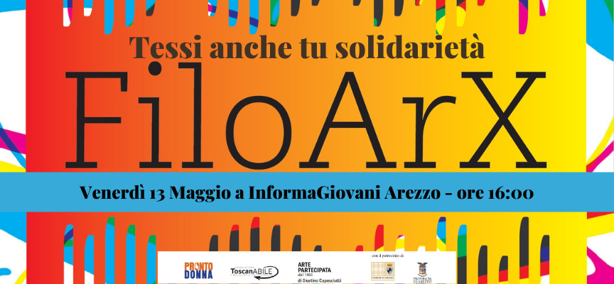 Il Progetto FiloArX Tessere solidarietà fa tappa all’InformaGiovani di Arezzo venerdì 13 Maggio In occasione della Giornata Internazionale per i diritti delle donne, l’associazione Pronto Donna di Arezzo, con la collaborazione di ToscanAbile e progetto artistico dei Giustino Caposciutti, ha presentato il Progetto “FiloArX Tessere solidarietà: dipingi un filo, realizza un’opera d’arte partecipata” e venerdì 13 Maggio, alle ore 16:00, InformaGiovani Arezzo ospiterà una tappa del progetto.