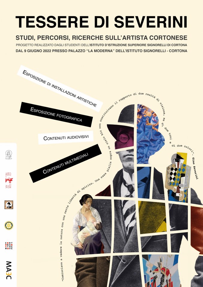 CORTONA – Giovedì 9 giugno alle ore 17:00 nella Sala del Consiglio del Comune di Cortona si terrà l’inaugurazione della mostra Tessere di Severini. Interverranno la Dirigente scolastica dott.ssa Maria Beatrice Capecchi, il dott. Paolo Bruschetti, il prof. Nicola Caldarone, il Presidente del Rotary Club Roberto Caloni, le docenti e gli studenti che hanno realizzato l’esposizione. La mostra nasce da un progetto che ha coinvolto tutti gli indirizzi dell’Istituto Signorelli attraverso il quale sono stati effettuati studi, approfondimenti, riletture e interpretazioni sull’artista cortonese Gino Severini. L’esposizione si terrà nei locali del Palazzo “La Moderna” e rimarrà aperta fino al 10 settembre secondo il seguente orario: dal lunedì al venerdì dalle 10:00 alle 14:00 e il sabato dalle 15:00 alle 19:00.