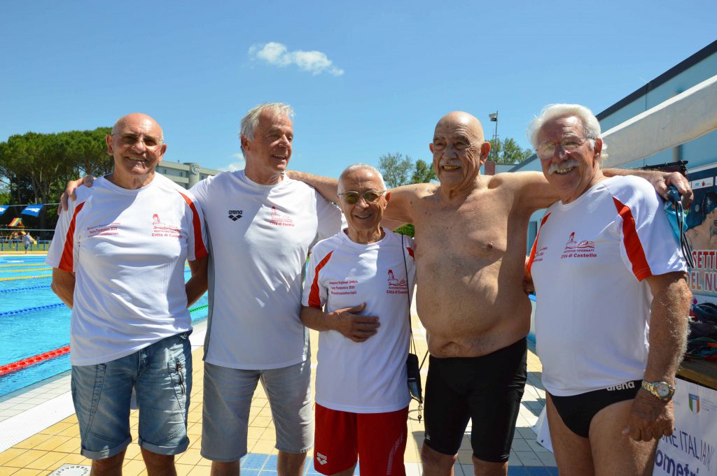 Il nuoto fa bene alla salute e allunga la vita. E’ il messaggio che arriva dalla piscina comunale di Città di Castello, dove a 86 anni Giuseppe Bilotta, del Centro Nuoto Bastia, ha stabilito il primato italiano nei 1.500 metri stile libero della categoria master M85 al XXXV Meeting Internazionale Masters Italo Galluzzi. Pisano di origine, ma umbro di adozione da oltre trent’anni, Bilotta ha nuotato in 33 minuti 42 secondi e 20 centesimi, abbassando di quasi 4 minuti il precedente record stabilito 18 anni fa da uno dei grandi nomi del nuoto master italiano, Luciano Canessa, con il tempo di 37.02.67 e sfiorando per una manciata di secondi il record europeo. Appena uscito dalla piscina il primo pensiero è stato per la moglie Marinella, che l’ha abbracciato a bordo vasca, per i figli Alessandro e Massimiliano, ma anche per i giovani: “ragazzi datevi una mossa, meno selfie e più sport: starete bene e avrete belle soddisfazioni”. Un appello spontaneo e autentico da chi ha iniziato a nuotare per alleviare i dolori alla schiena e ha trasformato un problema fisico in una opportunità. Con passione e grande determinazione Bilotta è diventato un vero e proprio recordman nel nuoto master con 46 titoli italiani, un primo e un secondo posto ai mondiali, un secondo e un terzo posto ai campionati europei e quasi 500 medaglie vinte in carriera da quando si è dato al nuoto nel 2004. Festeggiato da tutti gli atleti presenti al Meeting Italo Galluzzi, la manifestazione master più longeva d’Italia organizzata dai Nuotatori Tifernati Polisport che quest’anno ha registrato numeri record con 535 iscritti, Bilotta ha posato per una foto ricordo con i coetanei della staffetta M300 della squadra dei Nuotatori Tifernati Polisport, l’81enne Vittorio Mariucci, il 74enne Nerio Neri, il 73enne Sandro Belletti e il 72enne Fabio Cecconi, che nel pomeriggio saranno in acqua nella staffetta 4×50 mista in un altro ideale spot per i benefici del nuoto. “Siamo orgogliosi che la nostra piscina comunale sia stata teatro di una nuova bellissima impresa sportiva, nel segno dei sani stili di vita di cui abbiamo davvero bisogno dopo la pandemia”, hanno sottolineato il sindaco e l’assessore allo sport del Comune di Città di Castello. Di “una grande soddisfazione, che ripaga tanti sforzi e premia la determinazione con cui tutti noi per due anni abbiamo fortemente creduto nel ritorno dopo il Covid-19 di una manifestazione storica del nuoto master in Italia”, hanno parlato invece il presidente dei Nuotatori Tifernati Polisport Valentino Cerrotti e il responsabile organizzativo Francesco Serafini, che insieme all’amministratore unico di Polisport Stefano Nardoni hanno seguito passo dopo passo la preparazione del tentativo di record, fino all’esultanza finale che ha accomunato tutti i partecipanti