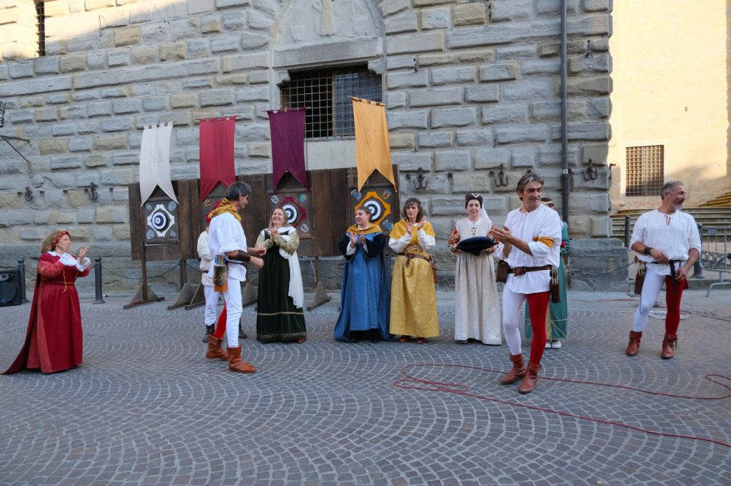 Finalmente, come ha sottolineato il Capitano, Francesco Izzo, dopo due anni “siamo tornati ad esibirci in pubblico nella splendida piazza Gabriotti (Piazza de’ Sotto per tutti i tifernati) con un torneo, quello di Porta S. Giacomo, carico di grandi novità”. Per la prima volta hanno tirato con la balestra manesca tre magnifiche “balistare”: Madonna Antonella (Antonella Belli), Madonna Donella (Donella Bernini) e Madonna Lucia (Lucia Bei) a dimostrazione che a tirar di balestra non erano solo gli uomini e che la balestra, soprattutto quella manesca, era alla “portata di tutti”. Il corteo, anziché interessare, come da tradizione, solo le due grandi piazze cittadine e Corso Cavour, ha allungato il suo percorso all’interno dello splendido giardino rinascimentale di palazzo Vitelli alla Cannoniera per rendere omaggio ai 110 anni della Pinacoteca Comunale e far rivivere ai visitatori presenti uno spaccato di vita del passato di tutto rispetto. Si è, poi, diretto al campo di tiro dove i “messeri balistari” e le “madonne balistare”, in rappresentanza delle quattro porte, si sono sfidati a suon di frecce e il gruppo ballo si è esibito a suon di pavana, tipica danza d’epoca, tra una terna e l’altra di tiri. La gara, avvincente e particolarmente sentita dai protagonisti, ha visto trionfare i Balistari di porta S. Giacomo, il titolo di Balestriere di Giornata (primo classificato tra i tiratori), è andato a Messere Roberto Lucaccioni, che è stato premiato con il consueto fiorino. Altri riconoscimenti sono andati a Porta S. Giacomo come porta vincitrice dei tornei 2021 e a messer Roberto Giudici come capo Balestriere. Il cerimoniale di giornata si è concluso con il giuramento dei nuovi balestrieri, tra cui le tre dame tiratrici, e la nomina a balestriere benemerito del maestro Franco Gaburri con la consegna di una pergamena realizzata dal maestro Gianni Ottaviani. “Il tutto – ha concluso il Presidente “capitano”, Francesco Izzo – nel rispetto dello spirito che anima balestrieri, figuranti e tamburini di una Compagnia che vuole riportare alla luce tradizioni e feste da tempo dimenticate, ma che rappresentano le preziose radici della nostra storia e della nostra identità”.