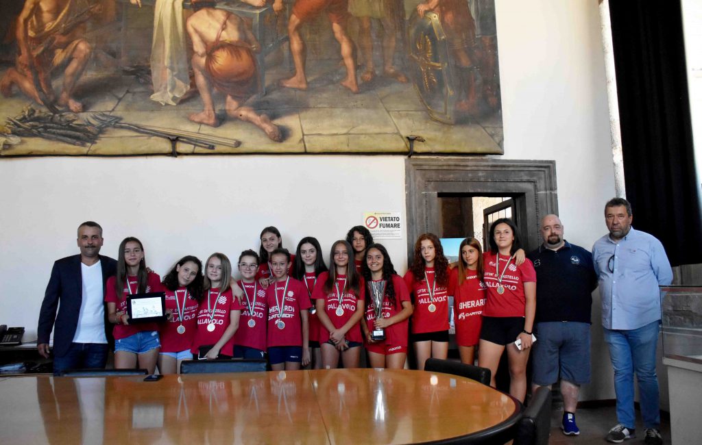 Sono le parole con cui l’assessore allo Sport Riccardo Carletti ha salutato giocatrici, dirigenti e tecnici della Pallavolo Città di Castello nella cerimonia con cui l’amministrazione comunale ha celebrato, attraverso la consegna di una targa commemorativa, la recente vittoria per 2-0 nella finale regionale contro Perugia Scuola Pallavolo e la conquista del trofeo del campionato di categoria under 13. Di fronte al presidente della Pallavolo Città di Castello Graziano Caselli, al direttore sportivo Maurizio Mandrelli e ai familiari che le hanno accompagnate, l’assessore Carletti si è congratulato con le giovanissime campionesse, invitandole a “continuare a impegnarsi nello sport, un importante veicolo di crescita personale dei cittadini del domani che l’amministrazione comunale sostiene come fondamentale strumento di welfare”. Le nuove campionesse umbre under 13 di pallavolo femminile, allenate da coach Pier Paolo Quarta e accompagnate dal team manager Pierluigi Orazi, sono Celeste Manganelli, Elisa Borgogni, Giulia Melli, Adele Pruscini, Matilde Donati Sarti, Caterina Zanelli, Sofia Savini, Silvia Jordache, Giorgia Dottorini, Greta Trombi, Lisa Zanchi, Matilde Provincia, Margherita Calestrini, Giada Boriosi, Anna Buttarini, Viola Rossi, Serena Pecorari e Marta Biancarelli.