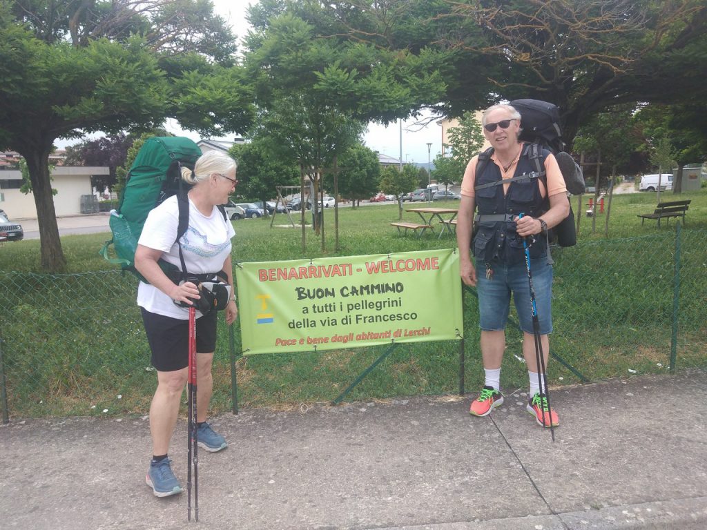 Un cartello posto nel parco, vicino alla chiesa, è stato installato per rivolgere un particolare saluto a coloro che dal santuario delle  Verna, dopo le tappe dell’Eremo di Cerbaiolo e Sansepolcro, attraversano la città e la valle tiberina per raggiungere Assisi. “Ben arrivati e buon cammino a tutti i pellegrini della “Via di Francesco”: pace e bene dagli abitanti di Lerchi”. “Questo il messaggio  dedicato che vuol essere un modo di essere coinvolti, anche come abitanti, in questa loro esperienza, che vede sempre più pellegrini passare per i nostri luoghi non solo per arrivare ad  Assisi, ma anche per scoprire le nostre bellezze naturalistiche, i nostri piccoli borghi, le nostre chiese, i santuari, gli eremi”, hanno dichiarato i promotori di questa bella iniziativa che è stata accolta da tutti gli abitanti della frazione tifernate. “Un viaggio nell’ambiente, nella storia e nell’arte che assieme all’accoglienza gentile e calorosa della nostra gente ne fanno uno dei cammini più amati dagli Italiani, tanto che in pochi anni, stando alle statistiche del Sacro Convento di Assisi, è più che triplicato  in pochi anni il numero di coloro che lo percorrono”. Oltre al saluto di benvenuto la Pro Loco di Lerchi ha provveduto a far riattivare, tramite l’amministrazione comunale, una fontanella d’acqua che si trova lungo il percorso francescano, nelle immediate vicinanze del paese.