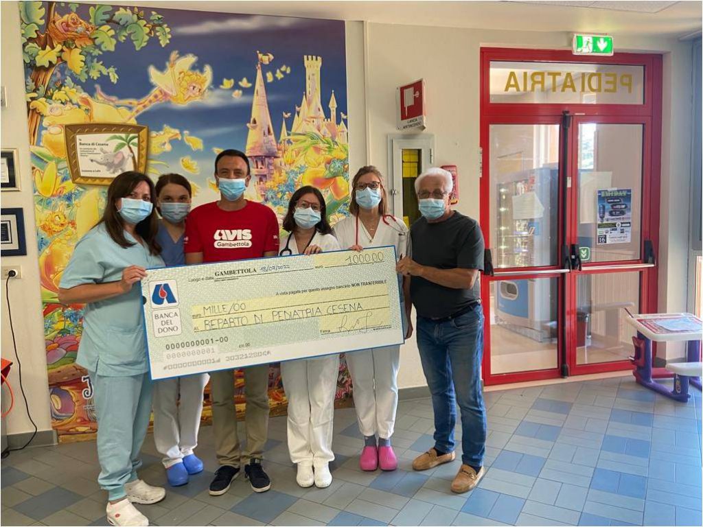 Mille euro in dono al reparto di Pediatria di Cesena grazie ad una cena solidale promossa da Avis Comunale Gambettola e Francesco Biondi, Volontario Auser
