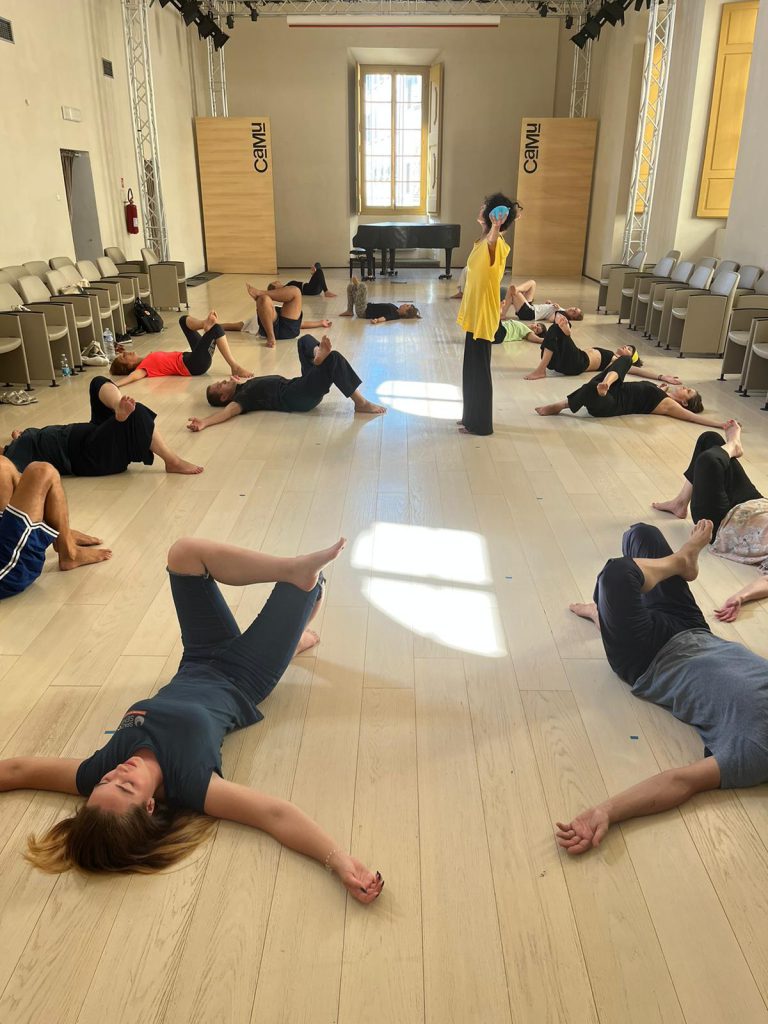 Sarà uno spettacolo di danza e composizione istantanea, improvvisazione, voce e atmosfere sonore in cui si esibiranno: Cammarata Elvira, Barsacchi Flavio, Giulia Refosco, Elisa Castagnoli, Beatrice Barlozzetti, Falcone Mariagiovanna, Yuri Novitsky, Taylor DeMille, Annie DeMille, Megan McClellan, Emily Benson, Lehi Moran, Anne Turner, Katherine Greenfield, Keith Bradshaw e Andrea Vazquez, diretti dai docenti Paolo Cingolani (Italia), Andrea Vazquez-Aguirre (USA/Messico), Consuelo Pacheco (Cile/Italia), Leonardo Lambruschini (Italia), Keith M. Bradshaw (USA), con la partecipazione di Gianfranco Pigozzi per le suggestioni sonore. La residenza è stata un’esperienza intensiva di cultura Italiana e un programma serrato di lezioni, coaching, masterclass e workshop su temi connessi a danza, musica e corpo. I partecipanti hanno potuto seguire le lezioni negli spazi di CAMU, nella cornice di Pizza Grande di Arezzo, presso la sede di Spazio Seme e all’aperto nella natura. Hanno preso parte al progetto danzatori esperti e professionisti del movimento e della composizione: un laboratorio intensivo di ricerca dove si sono incontrate diverse realtà, “orbitando” nello stesso spazio, nel tempo dell’improvvisazione. Tra i temi principali proposti: Instant Composition, Contact Improvisation, Somatic practice e Visual art e music. Il workshop di Instant composition, metodo per creare movimenti, suoni e parole in modo intuitivo e spontaneo, è stato condotto da Paolo Cingolani, danzatore specializzato nell’arte dell’improvvisazione e della composizione istantanea; il laboratorio di  Contact Improvisation, danza basata sull’improvvisazione, è stato tenuto da Leonardo Lambruschini, performer e danzatore, cofondatore e direttore artistico di Spazio Seme, insegnante di Contact Improvisation e Consuelo Pacheco, danzatrice, insegnante e ricercatrice somatica. Le lezioni di Somatic practice, sono state tenute da Andrea Vazquez-Aguirre, artista di danza interdisciplinare, mentre Visual art e music è stato condotto da Keith M. Bradshaw, decano associato del College of Performing and Visual Arts e docente di musica alla Southern Utah University.