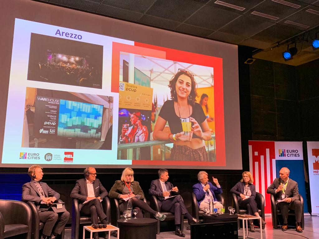 Siamo consapevoli della sfida che rappresenta questa combinazione, ma siamo ugualmente consapevoli della necessità di mettere in campo scelte nuove in tema di politiche culturali in grado di rispondere alle esigenze del cambiamento e supportare la transizione ecologica. L’occasione di confronto offerta dal Culture Forum di Eurocities è ancora una volta preziosa per la programmazione di progetti e strategie capaci di offrire le risposte più adeguate”. Così, il Sindaco Alessandro Ghinelli che si trova in questi giorni a Lille dove si svolge lo Eurocities Culture Forum, dedicato al tema della cultura sostenibile. Una “due giorni” di confronto tra le città europee su un tema di grande attualità ovvero quello del ruolo che il settore culturale può e deve avere nella promozione dello sviluppo sostenibile, un’opportunità per scoprire le migliori pratiche e gli esempi locali più virtuosi, dai piani di Belfast per l’anno della cultura 2024 per trasformare le sue strade in una foresta urbana, al sostegno di Dresda alle organizzazioni culturali per elaborare strategie sostenibili e firmare la Carta per la sostenibilità, all’iniziativa di Eindhoven a sostegno dei designer nella creazione di materiali e prodotti circolari. Arezzo ha fatto la propria parte presentando il Warehouse Decibel Festival, evento che si alimenta totalmente grazie all’energia prodotta dalla Centrale di Recupero di Aisa Impianti, unendo così alla proposta musicale di alta qualità, la sensibilizzazione del pubblico, in particolare dei giovani e giovanissimi, ai temi del riciclo, riuso, raccolta differenziata e in generale alla tutela dell’ambiente, promossi nell’ambito del progetto “Zero Spreco”. Particolare interesse ha suscitato la presentazione del bicchiere tecnologico dotato di microchip integrato, distribuito gratuitamente nell’ultima edizione del Warehouse, e che ha consentito di risparmiare oltre 8 Kg di plastica e 35,5 Kg di CO2.