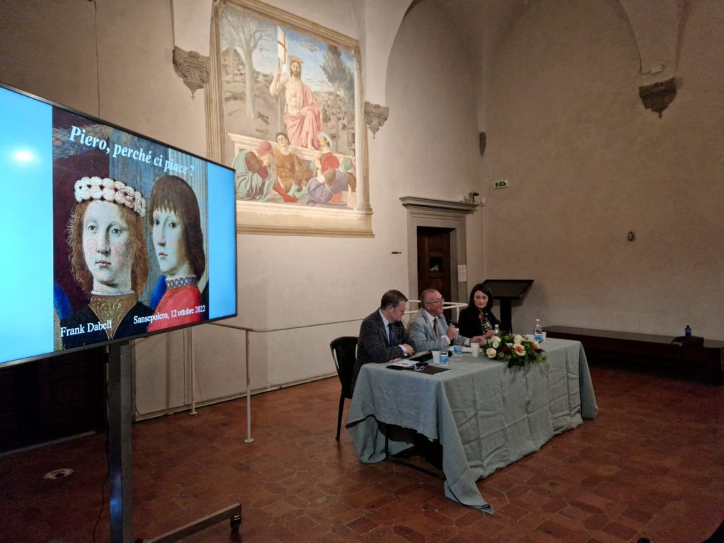 Le celebrazioni in memoria del maestro Piero delle Francesca mercoledì 12 ottobre sono culminate con la bellissima conferenza dello storico dell’arte Prof. Frank Dabell dal titolo “Piero, perché ci piace”. Dabell, affiancato dal prof Henry Thomas Fitzgerald Kennedy, coordinatore dell’evento, dopo l’introduzione dell’assessore alla cultura Francesca Mercati, ha approfondito aspetti affascinanti dell’arte e del genio di Piero della Francesca presentandoli al pubblico che, numeroso, ha riempito la bellissima Sala della Resurrezione del Museo Civico di Sansepolcro.