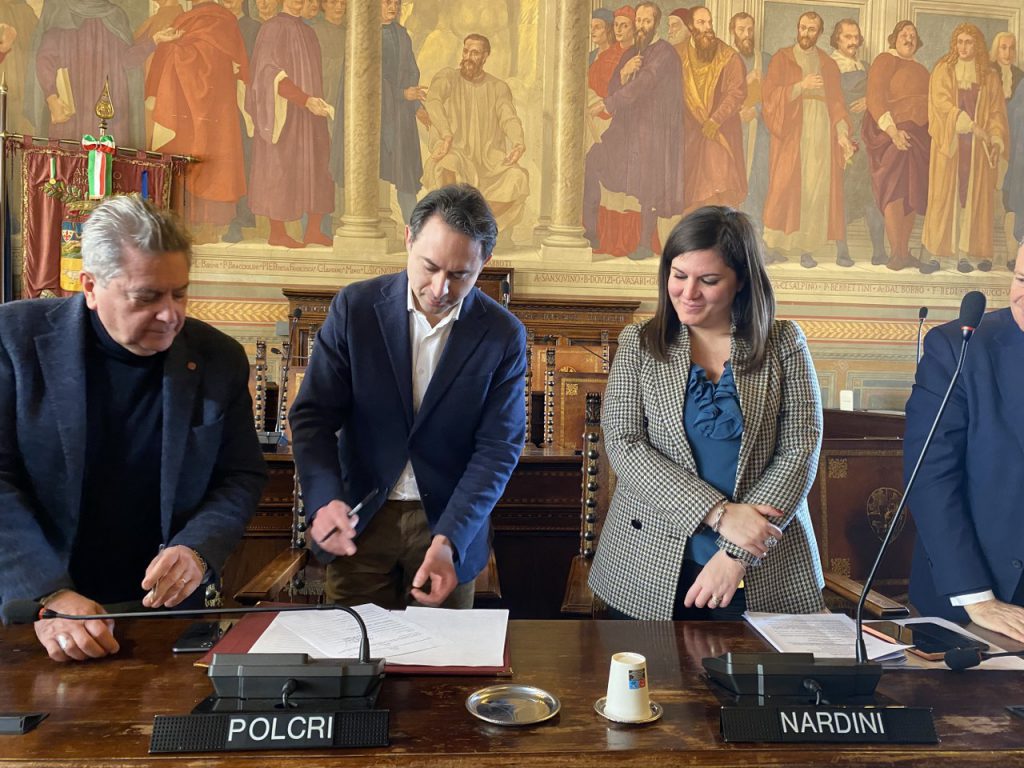 Il Presidente della Provincia di Arezzo Alessandro Polcri sigla oggi 6 febbraio 2023, il protocollo di intesa interistituzionale per favorire l’occupazione calibrando l’offerta formativa in base alle esigenze del territorio. Un percorso, che la Regione Toscana sta portando avanti in molte province con l’Assessore Alessandra Nardini, presente tra i firmatari nella Sala dei Grandi