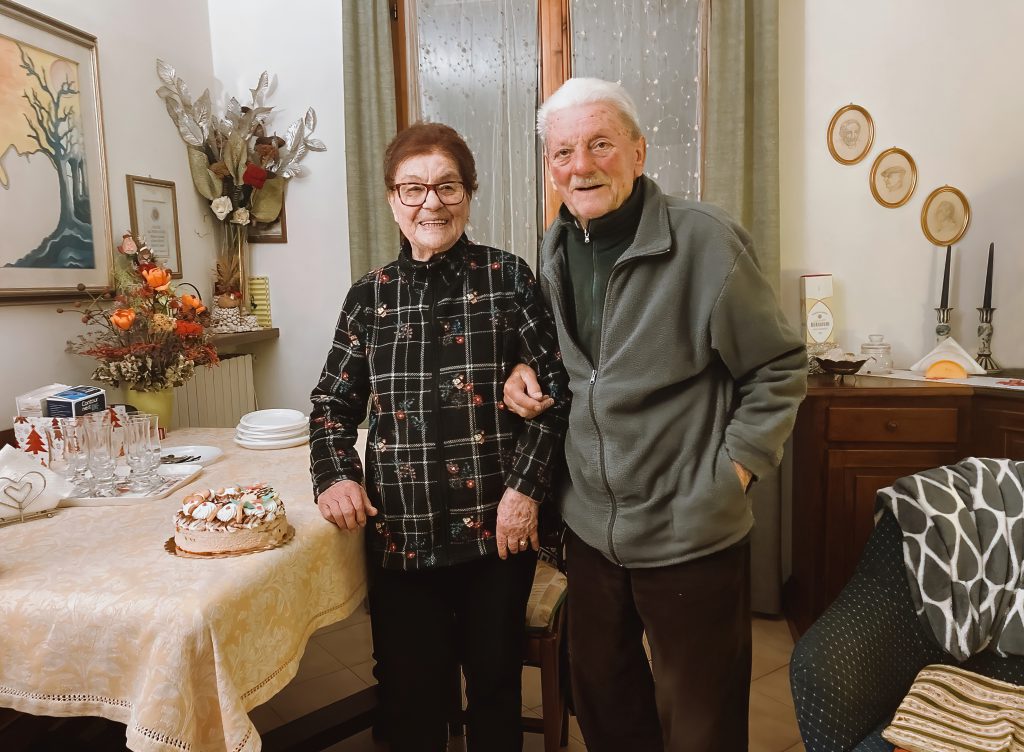 Quasi settanta anni di vita insieme, amore, famiglia e lavoro, con un desiderio ancora in sospeso da esaudire: scattare una foto davanti all’altare della chiesa di campagna dove 67 anni fa avevano pronunciato il fatidico “si”. Storia d’altri tempi, che cade a pennello proprio nel giorno di San Valentino, festa simbolo dell’amore universale, quella di MariaFlamini, 87 anni, originaria di Apecchio, cuoca sopraffina e di Settimio Caselli, 89 anni, maestro artigiano edile, tifernate “doc” di Pieve delle Rose, freschi di celebrazioni in famiglia dell’ambito traguardo di vita insieme, un anniversario di matrimonio da guinness dei primati che la dice lunga sulla solidità della super “coppia”. Fra i ricordi e gli aneddoti di quella giornata, una fredda mattina di Febbraio del 1956, con la neve che aveva sommerso il suggestivo paesaggio al confine umbro-marchigiano, c’e ne uno davvero singolare che ha segnato la vita di Maria e Settimio. Proprio a causa della copiosa nevicata alcuni parenti di entrambi le famiglie ed il fotografo ufficiale che avrebbe dovuto immortale lo scambio delle fedi nuziali nella chiesa di Fraccano a metà strada fra Apecchio e Città di Castello alla presenza dell’allora parroco don Sante Ba, non riuscirono a raggiungere il luogo della cerimonia proprio a causa dell’impraticabilità delle strade ghiacciate e ostruite dalla neve. Anche per gli sposi e i “temerari” al seguito fu davvero un’impresa arrivare a destinazione, resa possibile grazie all’utilizzo di carrozze trainate da animali e volontari disposti a spalare la neve nei punti più critici. Alla fine comunque, infreddoliti ed emozionati, riuscirono ad approdare in chiesa ed il matrimonio fu celebrato con grande gioia e festeggiato poi come si conviene con un pranzo secondo tradizione. Nessuna foto però, in bianco e nero, di quei momenti solo ricordi e aneddoti da raccontare. Ora a distanza di quasi settanta anni da quel momento che ha segnato la loro vita e delle tre figlie, Gabriela, Nadia e Giuseppina e dei quattro amati nipoti, Emilia, Giulia, Chiara e Piergiorgio, che li circondano, Maria e Settimio, avranno la possibilità di tornare in quella chiesa a Fraccano e di assistere alla messa che sarà celebrata da un sacerdote amico di famiglia, don Giancarlo Lepri e scattare stavolta a “colori” in digitale la foto mai avuta e magari anche un video da postare e condividere sui social. Appena sarà possibile come si dice in gergo, “il nastro verrà riavvolto” e si tornerà indietro di 67 anni. Una bella storia di vita insieme dunque che prosegue. Nel frattempo alla bellissima coppia giungono gli auguri istituzionali da entrambi gli ambiti territoriali di provenienza, Citta’ di Castello e Apecchio, attraverso i sindaci, Luca Secondi e Vittorio Nicolucci: “auguri sinceri a Maria e Settimio per l’anniversario di matrimonio e per l’esempio di vita, rettitudine, laboriosità e senso di appartenenza alla comunità locale, alla storia e tradizioni. Una bella storia”.