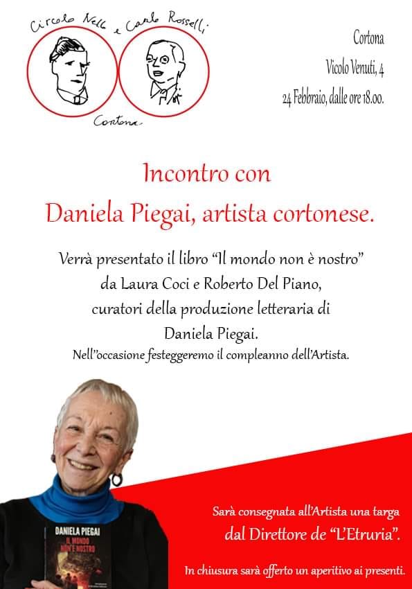 È in questo scenario che va interpretato il femminismo della scrittrice: sobrio, mai esibito, ha dolorosa contezza di quanto ancora siano impervie le vie della parità. Ed è un femminismo che si incarna nei personaggi femminili non convenzionali, portatori di valori alternativi rispetto alla norma e capaci di attraversare le contraddizioni; nel linguaggio calibrato con attenzione di genere, oltre che evocativo ed elegante, e nella prosa che unisce garbo e ironia; nello sguardo di donna, che non può che essere differente, alieno, perché differente è il modo di leggere e interpretare la realtà che donne e uomini storicamente hanno sviluppato. merito di Delos Digital e del suo direttore editoriale Silvio Sosio aver riscoperto Daniela Piegai, grande scrittrice cortonese, di cui nell’ottobre scorso è stato riproposto Il mondo non è nostro, un capolavoro ormai divenuto introvabile a causa delle sfortunate vicende editoriali de La Tartaruga, l’editrice che lo pubblicò nel 1989. E non è che l’inizio: in primavera, sarà la volta di un secondo titolo, Incanti alieni, che comprenderà i primi dodici racconti dati alle stampe dall’autrice tra la fine degli anni Settanta e l’inizio degli anni Ottanta; a lei, inoltre, sarà dedicata ampia parte del numero 97 della rivista di fantascienza Robot e l’intero numero 13 della rivista di critica marx/z/iana Un’ambigua utopia, un monografico di ben 120 pagine. Infine, le persone che la apprezzano e le vogliono bene potranno incontrare Daniela nella sua Cortona, nella sua galleria d’arte, venerdì 24 febbraio alle 18.00, per augurarle, con qualche giorno di ritardo ma con affetto immutato, ‘buon compleanno’