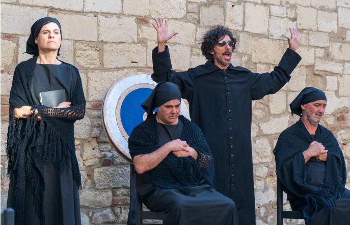 Una polis alternativa per stipulare una pace con Sparta, è la storia di Diceopoli, un contadino stufo della guerra che la sua storia viene raccontata ne ‘La Commedia più antica del mondo – Discorso su Gli Acarnesi di Aristofane’, de I Sacchi di Sabbia con la collaborazione di Francesco Morosi, con Massimo Grigò, scultura Noela Lotti.  In scena al Pinsuti sabato 11 marzo alle ore 21:15, Gli Acarnesi di Aristofane è la più antica commedia del mondo ma il suo dispositivo comico, ripulito dai cascami del tempo, è ancora esplosivo. Con un ghigno rabbioso e idealista, Aristofane costruisce un nuovo mondo: un mondo libero da ingiustizie e ipocrisie, dove non esistono la povertà e la guerra. A distanza di 2500 anni, la commedia continua a porci delle domande fondamentali: il mondo è marcio? E se sì, si può rifondare immaginandone uno nuovo? Si può essere al tempo stesso grandi umanisti e insolenti, eleganti e osceni, anarchici e civili? Si può amare il proprio pubblico e al tempo stesso insolentirlo beffardamente?