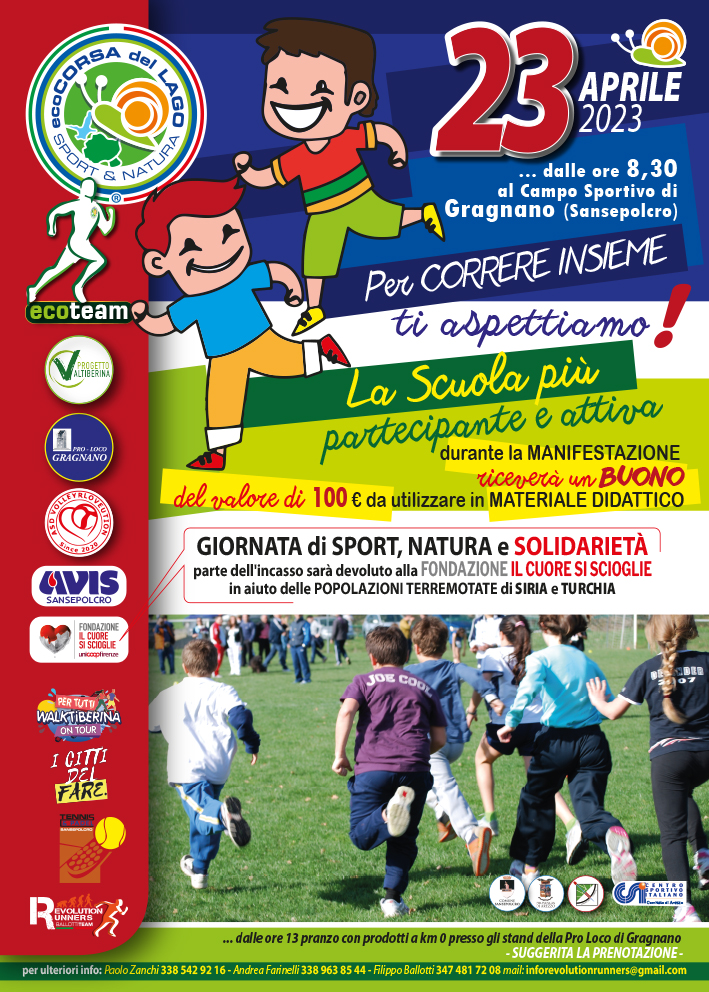 La gara podistica riceve molti attestati di stima sin dalle prime edizioni grazie al suo particolare percorso collinare, immerso nella natura che costeggia la diga di Montedoglio, grazie alla sua ottima organizzazione e alla grande quantità di premi in natura . La Grande forza dell’ASD Eco team che organizza l’evento è infatti il supporto di molte piccole e medie realtà della Val tiberina che riescono a rendere Eco corsa la gara podistica più premiata del centro italia e non solo. Giunta alla sua 11° edizione Eco corsa del lago a subito nel tempo dei piccoli cambiamenti trasformando quella che era una semplice gara podistica ad un vero e proprio evento di sport natura e solidarietà. Infatti il programma della giornata è diventato ricco e serrato. Si parte nel campo sportivo di Gragnano con le categorie dei più piccoli nelle varie distanze in base alle fasce di età. Contemporaneamente al centro del campo si svolgono attività sportive di Mini tennis e Mini volley con il coinvolgimento del Circolo tennis Sansepolcro e il Volle Revolution di Valerio Giunti. Dopo le premiazioni delle categorie Giovanili si da il via all’eco passeggiata svolta sul medesimo percorso della gara eccetto il primo anello di 2 km.Mezzora dopo ha invece il via la gara podistica. La gente a passeggio ha cosi l’opportunità di godersi la giornata, il paesaggio e gli atleti che sfilano di corsa uno ad uno.Al termine della gara avverranno le premiazioni degli assoluti e di categoria e a seguire pranzo con prodotti a km 0 presso gli stand della Proloco di Gragnano. Ma la novità che quest’anno fa la differenza è la collaborazione con unicoop firenze e fondazione il cuore si scioglie. Infatti Eco team ha deciso di donare parte dell’incasso alla fondazione il cuore si scioglie che provvederà a donarli a terremotati di siria e turchia