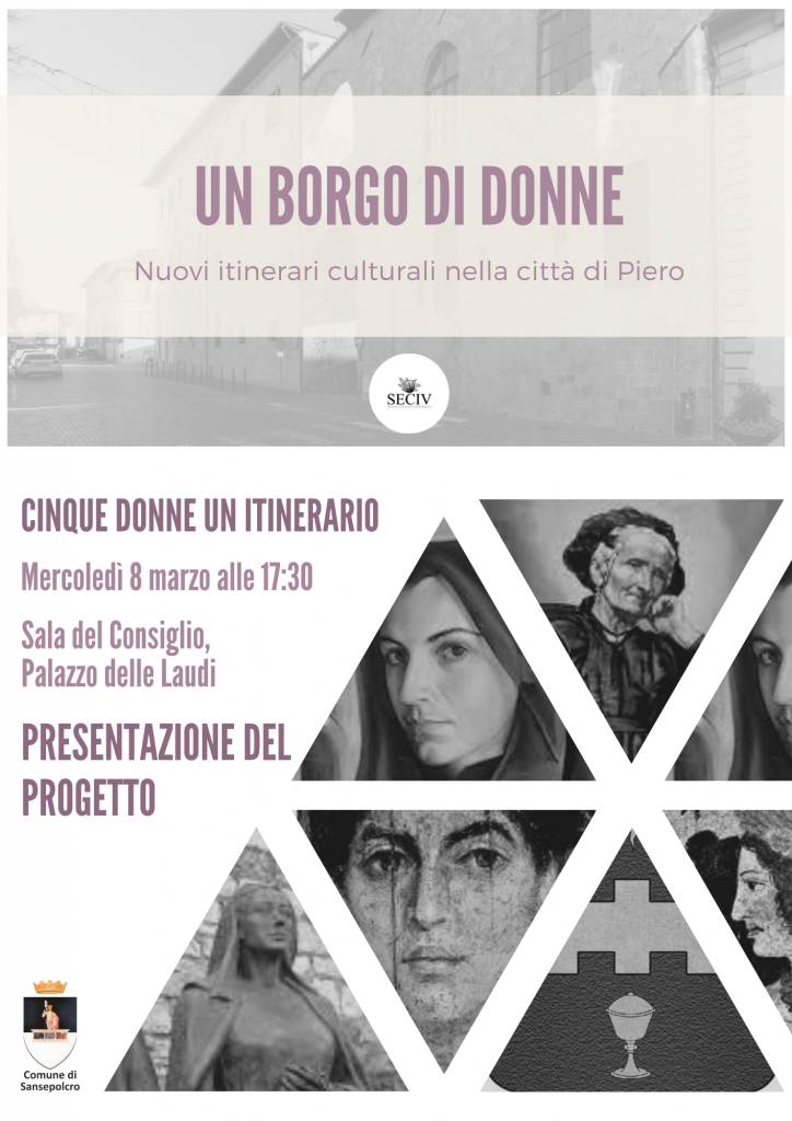 “Il progetto un Borgo di Donne verrà presentato al pubblico proprio in occasione della festa della donna, una giornata densa di significato al quale nel nostro piccolo abbiamo voluto contribuire redigendo questo nuovo itinerario interno ed esterno al centro storico di Sansepolcro e che vedrà il suo compimento nell’estate 2023.” “L’itinerario vedrà l’approfondimento della figura di cinque donne, che in un modo o nell’altro hanno lasciato qualcosa d’importante nella città di Sansepolcro o nella Valtiberina, il progetto in sé prevede la costituzione di un sito web dedicato a scoprire vari itinerari culturali interni alla città di Sansepolcro e successivamente alla Valtiberina, con l’utilizzo di una mappa interattiva ed in futuro l’utilizzo in loco di un Qrcode, che una volta inquadrato saprà raccontare la storia del reperto, edificio o opera d’arte legata ad uno o più specifici itinerari.” “Questo itinerario sarà l’inizio di una lunga serie di progetti che speriamo di portare a termine in futuro, e che se possibile, vadano a coinvolgere tutti i comuni della Valtiberina in un’ottica di rete culturale interattiva.”