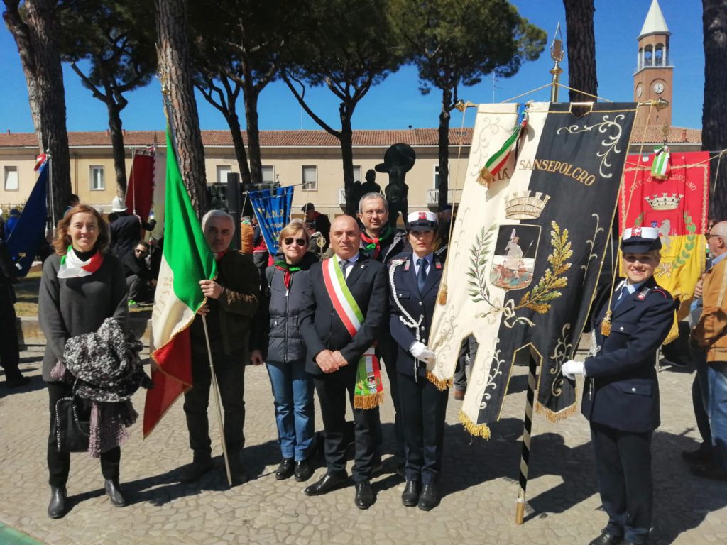 SANSEPOLCRO – Come tradizione, anche quest’anno il Comune di Sansepolcro ha preso parte nel giorno di Pasquetta alla cerimonia del 78° anniversario della battaglia del Senio e della liberazione di Alfonsine, comune del territorio ravennate, eventi che dettero il via alla istituzione democratica nel centro romagnolo al termine della Seconda Guerra Mondiale. Assieme a delegazioni provenienti da Emilia, Marche e Umbria, c’era come detto anche il gonfalone del Comune di Sansepolcro, con Palazzo delle Laudi rappresentato per l’occasione dal consigliere Giuliano Del Pia, che ha presenziato a tutti gli eventi dell’intensa giornata. Insieme a lui presente anche Patrizia Fabbroni, presidente dell’Anpi del Borgo.