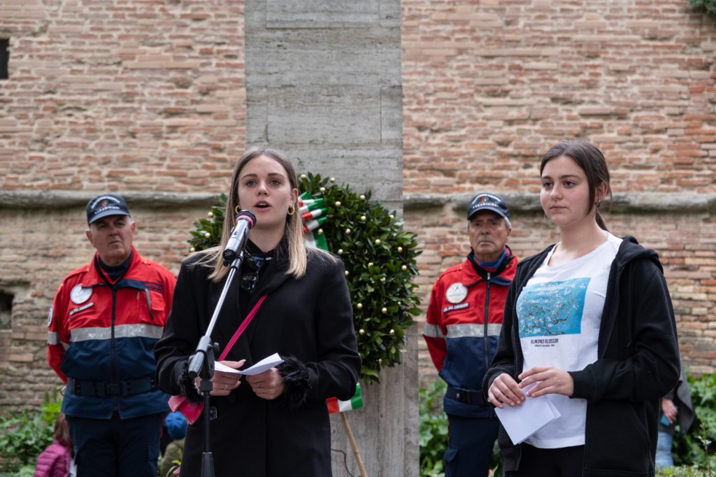Superata la pandemia, la ricorrenza del 25 aprile è stata caratterizzata dal ritorno del corteo pubblico formato dai cittadini, dalle autorità civili, politiche e militari, dai rappresentanti dell’associazionismo tifernate (associazioni combattentistiche), dell’Istituto di Storia Politica e Sociale Venanzio Gabriotti rappresentato nell’occasione anche dal presidente Alvaro Tacchini, che ha attraversato il centro storico lungo piazza Gabriotti, corso Cavour, piazza Matteotti, corso Vittorio Emanuele e largo 22 Luglio, fino alla stele dedicata alla Resistenza Altotiberina in viale Vittorio Veneto, teatro della rituale commemorazione ai caduti. Qui il primo cittadino ha depositato una corona di fiori, alla presenza del presidente del consiglio comunale, dei componenti della massima assise cittadina e dei rappresentanti delle istituzioni locali, regionali e nazionali, con l’accompagnamento musicale della Filarmonica Giacomo Puccini diretta dal maestro, Nolito Bambini. La presidente dell’Anpi di Città di Castello, Anna Maria Pacciarini ha ricordato il sacrificio delle tante persone che si opposero al regime nazifascista e per questo furono perseguitate, deportate e uccise, rimarcando come la Costituzione rappresenti il presidio dell’antifascismo e della democrazia nel nostro Paese. Al termine della cerimonia, gli studenti dell’Istituto Polo Tecnico Franchetti-Salviani, ai quali i rappresentanti istituzionali hanno rivolto l’invito a custodire la memoria dei fatti della storia e a essere i primi difensori della libertà e della democrazia nella comunità tifernate, sono stati protagonisti della presentazione del progetto che prevede tra l’altro l’intitolazione a Tina Anselmi, della rotatoria posta proprio di fronte alla stele dedicata alla Resistenza Altotiberina, tra viale Vittorio Veneto, viale Leopoldo Franchetti, via Carlo Liviero e viale Vittorio Emanuele Orlando. Nel nome di un simbolo della democrazia quale è stata in vita l’Anselmi, da staffetta partigiana a prima donna ministro della Repubblica Italiana, Matilde Camaiti e Celeste Saltanocchi, del Polo Tecnico “Franchetti-Salviani”, hanno presentato a nome dei compagni di istituto il progetto sulla toponomastica femminile intitolato “La parità si fa strada”, che è stato recepito dal Comune dopo la realizzazione su proposta di Spi Cgil Alto Tevere e Anpi Città di Castello, in collaborazione con l’Associazione Toponomastica Femminile. L’elaborato preparato sui banchi di scuola ha portato all’intitolazione di nove rotonde di Città di Castello a donne partigiane, sindacaliste e madri costituenti. Il corteo, durante il percorso nel centro storico è stato salutato dai cittadini, turisti e dai titolari di esercizi commerciali e negozi rimasti aperti anche oggi giornata festiva. Particolarmente suggestivo e simbolica l’immagine del tricolore che ha sventolato all’interno del bellissimo giardino rinascimentale della Pinacoteca comunale con sullo sfondo la facciata, di rara bellezza, caratterizzato dalla decorazione a graffito eseguita da Cristofano Gherardi, detto il Doceno, su disegno del Vasari. Un modo davvero originale, messo in atto dalle operatrici museali di “Poliedro”, per celebrare e rendere omaggio al 25 Aprile all’insegna della storia, arte, cultura e attaccamento ai valori della patria.