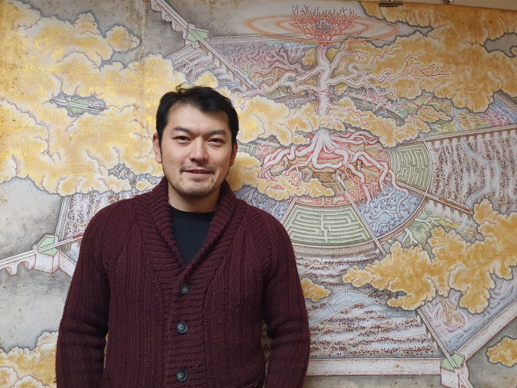 Tetsuji Endo nasce nel 1977 a Chiba, in Giappone. Si laurea alla prestigiosa Università d’arte “Musashino Bijutsu Daigaku Art University” di Tokyo, specializzandosi in pittura a olio. Lavora come pittore scenografo nel “Teatro Shinbashi” e nel “Teatro Nazionale Giapponese” di Tokyo, quindi si trasferisce in Italia. Da anni vive nella campagna di Capolona, in provincia di Arezzo. La formazione e la cura meticolosa per i dettagli, unita allo studio della pittura rinascimentale italiana che l’artista approfondisce dopo il trasferimento, rendono la ricerca di Tetsuji Endo originale e caratterizzata da profondi simbolismi che guardano alla tradizione metafisico-esoterica di provenienza pitagorica, ermetica e indiana. “Da dove veniamo e dove andiamo”. L’artista giapponese Tetsuji Endo, che da anni vive ad Arezzo, espone alla Icario Winery di Montepulciano. Sabato 20 maggio l’inaugurazione ufficiale con una degustazione di vini