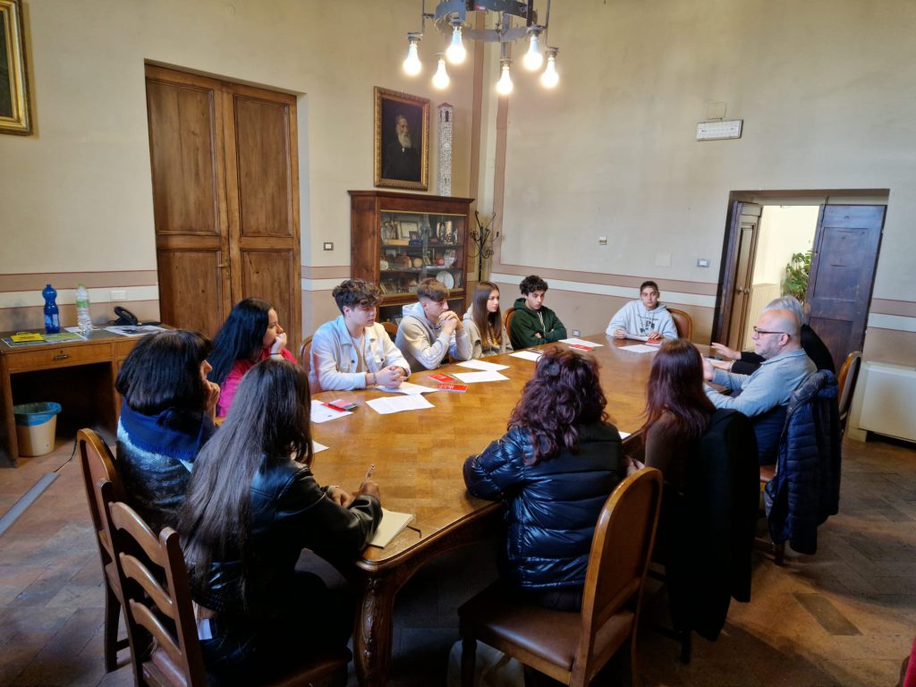 SANSEPOLCRO – Nella mattinata di Giovedì 18 Maggio, nella sala Giunta del Comune di Sansepolcro, è avvenuto un importante incontro tra i rappresentanti degli studenti di vari Istituti Superiori di Sansepolcro, l’Assessore alle politiche giovanili Valeria Noferi, il responsabile del settore cultura e scuola del Comune, dott.sa Maria Cristina Giambagli, alla presenza del Presidente del Consiglio Antonello Antonelli