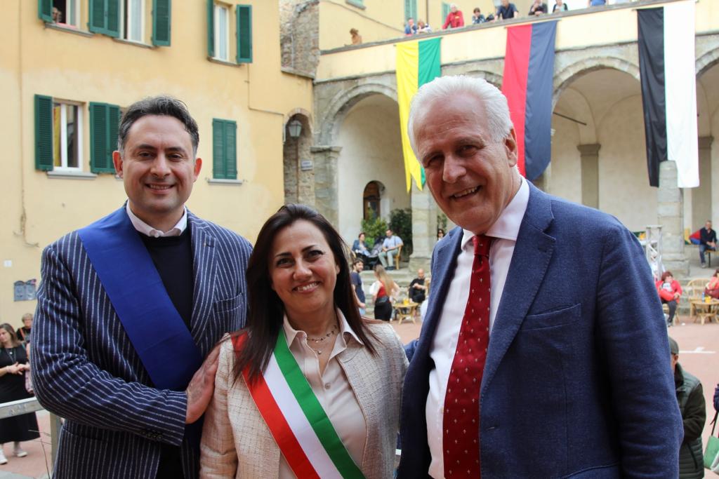 Comune di Lucignano – Taglio del nastro dell’edizione 2023 alla presenza del Presidente della Regione e del Presidente della Provincia di Arezzo Polcri. Giani: “Lucignano perla della Toscana” Il ritorno del “Grifo d’oro”, il premio al miglior carro, deve avere motivato al massimo i quattro rioni lucignanesi nella realizzazione di vere e proprie opere d’arte floreali, che hanno animato le vie e le piazze, ammirate e applaudite da una folla di circa 5 mila visitatori, tra cui molti turisti, accorsi d’ogni dove per la prima della Maggiolata.