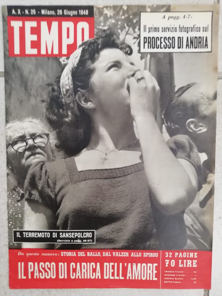 SANSEPOLCRO – “Dal tredici giugno la popolazione di Sansepolcro vive nelle strade, accampata come meglio le è stato possibile sotto le grandi tende bianche della Croce Rossa, fra la polvere fina della pianura e l’odore intenso dei tigli”. Comincia così l’ampio articolo che il periodico “Tempo” del 26 giugno 1948 dedicò al terremoto che appunto il 13 giugno di quello stesso anno, era domenica, colpì il Borgo.
