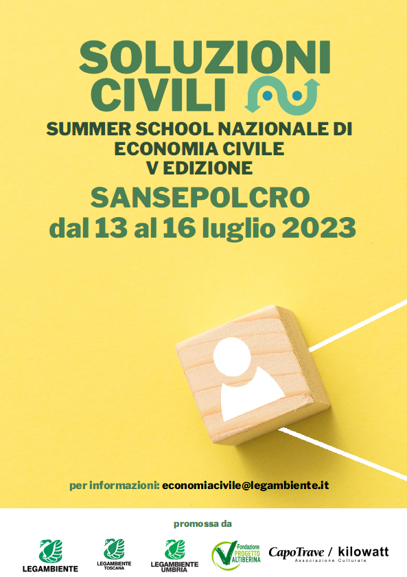 Dal 13 al 16 luglio Sansepolcro ospiterà la V edizione della Summer School nazionale di Economia Civile, appuntamento dedicato al tema dell’economia civile e della transizione ecologica promossa da Legambiente in collaborazione con i distretti di Umbria e ToscanaFondazione Progetto Valtiberina e Capotrave/Kilowatt.