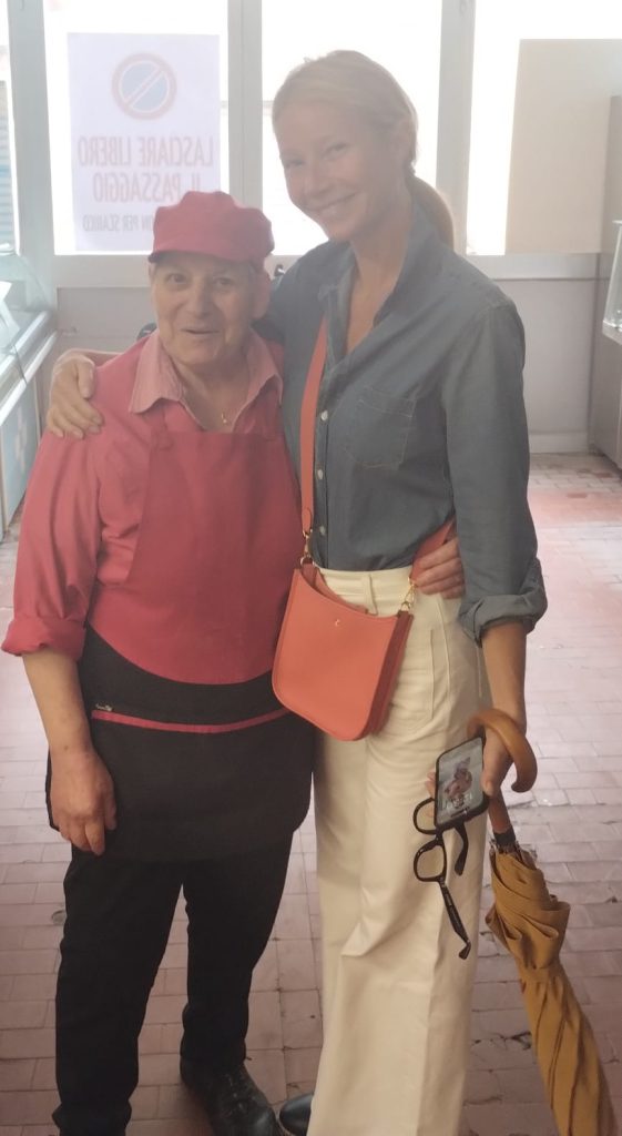 Non è la prima volta che la bellissima attrice e imprenditrice statunitense (Premio Oscar e un Golden Globe come migliore attrice per il film Shakespeare in Love, nel 2013 donna più bella dell’anno per la rivista People) fa tappa nel centro storico tifernate e si aggira fra le bancarelle del mercato in piazza Gabriotti e Matteotti ed in alcuni luoghi simbolo delle eccellenze gastronomiche e della tradizione agro-alimentare. Cosi è stato in questi ultimi giorni da “Denise”, la celebre “boutique” delle prelibatezze gastronomiche, dove ormai da 63 anni, Fiorella Flavi, per tutti “Denise”, assieme alla figlia, Alessandra Guerrucci, all’interno del mercato coperto, si fa trovare dietro il suo bancone di salumi e formaggi, con il sorriso sulle labbra, garbo e disponibilità verso il cliente. Pur non conoscendo le svariate lingue si è sempre fatta capire con trucchi e stratagemmi che tuttora utilizza per prendere i clienti per la gola. Prima di tutto ai tifernati ma poi anche a personaggi noti, da Alberto Burri a Monica Bellucci, passando per Marcello Tusco ed ora, Gwyneth Paltrow, tutti attirati dai suoi prodotti tipici. “Gwyneth – precisa con un pizzico di orgoglio “Denise” – da anni spesso in estate ci viene a trovare ed apprezza tutti i nostri prodotti, formaggi, salumi, ed altre specialità: la sua presenza non passa certo inosservata per la bellezza, la gentilezza dei modi ed il sorriso radioso”. Dal mercato coperto al ristorante-trattoria, meta di buongustai e cultori dei piatti a base di tartufi e funghi e non solo, gestito da Cristiano e Marco Cuccarini, il passo è breve: l’attrice statunitense ha fatto tappa anche li per un pranzo nel cuore della città posando sorridente per la foto di rito formato “social” con tutto lo staff del locale che l’ha accolta nel migliore dei modi. “Fa piacere ricevere visite di personaggi conosciuti che ti mettono subito a proprio agio e dimostrano di apprezzare la cucina locale. Una piacevole sorpresa”, dichiarano i titolari Cristiano e Marco Cuccarini. Anche il sindaco, Luca Secondi e l’assessore al Turismo e Commercio, Letizia Guerri, salutano con soddisfazione “la presenza in città della nota attrice ed icona del cinema e spettacolo internazionale, come un ulteriore conferma della capacità attrattiva in termini turistici del territorio attraverso le bellezze artistiche, culturali, storiche e culinarie, con i prodotti della norcineria e gastronomia locale che non temono confronti. Un onore per la città e comunità tifernate”.