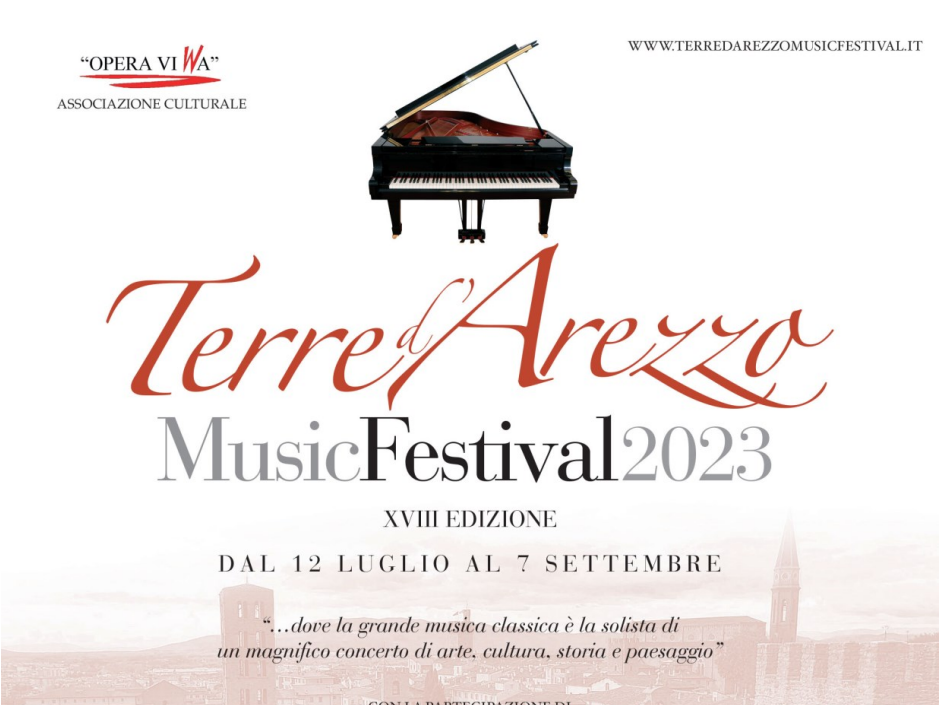 “Terre d’Arezzo, un festival dove la grande musica classica è la solista di un magnifico concerto di arte, cultura, storia e paesaggio”. Organizzato dall’Associazione “Opera Viwa” con il patrocinio e contributo di MIC, Ministero della Cultura, Regione Toscana Settore Spettacolo e il patrocinio della Provincia di Arezzo, il Festival arriva quest’anno alla sua 18° edizione. Ancora più ricco ed esteso il cartellone che attraverserà il territorio di ben 16 comuni della Provincia di Arezzo, presentando un variegato ventaglio di appuntamenti con ospiti e programmi d’eccezione.