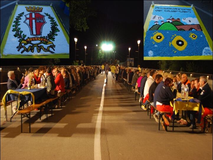 Cenare sotto le stelle sul ponte del Tevere seduti ad una tavola lunga oltre settanta metri – Sabato 22 Luglio a partire dalle ore 20,30 la sesta edizione della cena sul ponte del tevere Cenare sotto le stelle sul ponte del Tevere seduti ad una tavola lunga oltre settanta metri – Sabato 22 Luglio a partire dalle ore 20,30 si rinnova la tradizione la tradizione con la sesta edizione della “cena sul ponte del tevere” organizzata dall’associazione dei quartieri “Quellideladelponte”.