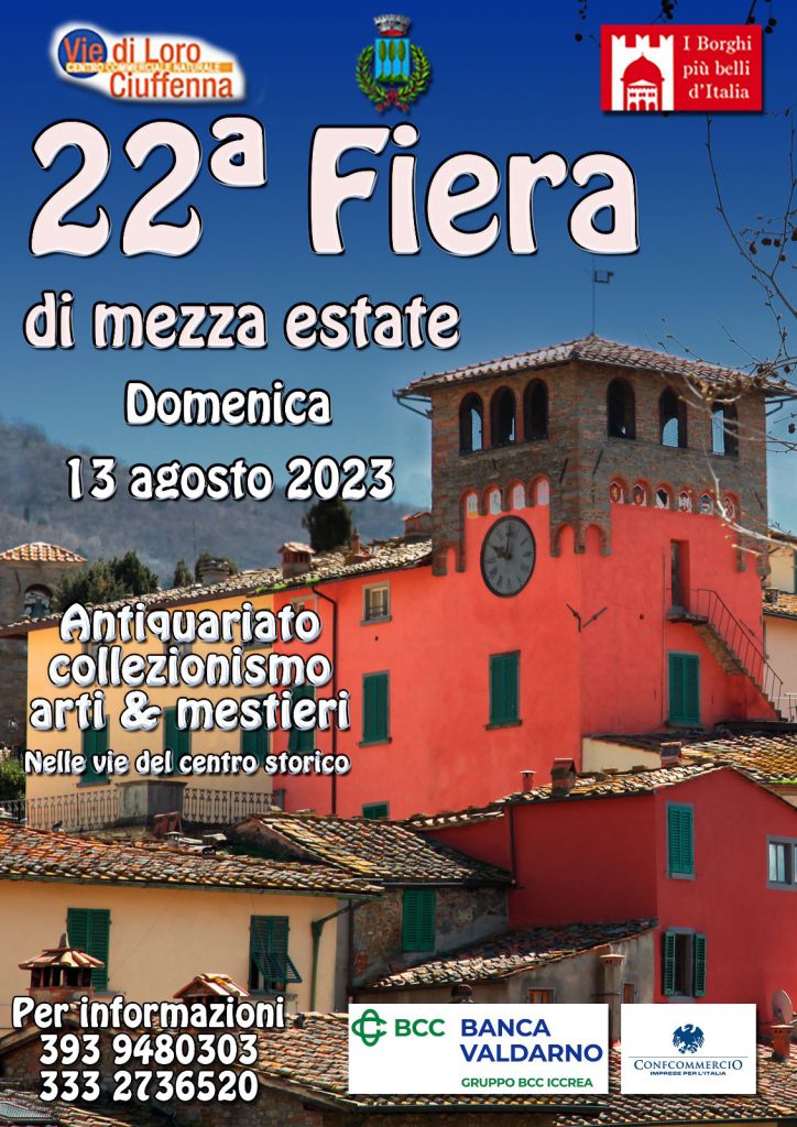 Grande attesa per i due eventi in programma il 6 e 13 agosto organizzati nelle vie del centro storico del piccolo borgo del Valdarno. Non mancheranno buon cibo, intrattenimento, musica e mercatini dell’antiquariato. Gli eventi sono organizzati con la regia della Confcommercio nell’ambito delle attività di animazione del Centro Commerciale Naturale, con il patrocinio del Comune di Loro Ciuffenna e il contributo di Banca del Valdarno Credito Cooperativo
