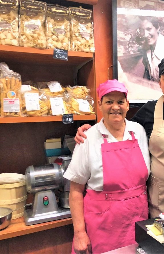 Mai un giorno di ferie, solo quelle imposte per legge dal calendario che dal 1960, appena diciottenne, “Denise” ha onorato ogni mattina con la sveglia all’alba, indossando grembiule e cappellino d’ordinanza dietro al bancone del punto vendita di prelibatezze della norcineria, formaggi e cose buone della tradizione locale prima accanto al marito Gabrio Guerrucci e poi da qualche anno con la figlia Alessandra, sempre sorridenti e gentili con la numerosa clientela. Anche oggi la tradizione è stata rispettata, la vigilia di ferragosto, simbolo dell’esodo estivo, delle vacanze anche di un giorno solo da onorare con tanto di pic-nic nei prati di montagna o sulla sabbia della spiaggia al mare o al lago. “Il menù della tradizione è sempre quello degli anni sessanta a base di salumi, prosciutto a chilometro zero, formaggio fresco o stagionato, pane umbro, ortaggi e verdure di stagione, pomodori, fiori di zucca e l’immancabile cocomero, il tutto accompagnato da un buon bicchiere di vino”, sentenzia Denise, dispensando consigli agli abituali clienti e numerosi turisti, fra cui vip e personaggi famosi, che proprio anche oggi si affidano a lei per organizzare al meglio la tradizionale gita fuori porta di ferragosto. Fra loro numerosi clienti che proprio negli anni sessanta e settanta si recavano davanti al bancone del mercato coperto per fare la spesa per ferragosto per mano assieme ai genitori, ed oggi, genitori a loro volta con i figli al seguito sono ancora li a proseguire una tradizione che appartiene gelosamente alla storia dei costumi cittadini. Denise ha alzato per la prima volta la saracinesca dell’attività commerciale a soli di 18 anni nel 1960 e da allora non si è mai concessa un giorno di ferie. Un vero e proprio primato di attaccamento al lavoro, alla comunità locale e alla clientela sempre nello stesso luogo, in fondo al mercato coperto accanto alla pescheria che gli è valso numerosi riconoscimenti ufficiali fra cui quelli del comune di Citta’ di Castello e Citerna (comune dove risiede da qualche anno) e della Camera di Commercio di Perugia. Pur restando sempre al proprio posto ha praticamente fatto il giro del mondo, servendo ed intrattenendo con aneddoti e dovizia di particolari sui prodotti in vendita, clienti provenienti da ogni continente e regione d’Italia. Non conoscendo le svariate lingue si è sempre fatta capire con trucchi e stratagemmi che tuttora utilizza per prendere i clienti per la gola. Prima di tutto ai tifernati ma poi anche a personaggi noti, da Alberto Burri a Monica Bellucci, Carlo Fuscagni, passando per Marcello Tusco e Gwyneth Paltrow, tutti attirati dai suoi prodotti tipici e dal suo “sorriso”. “Buon ferragosto – esclama Denise in posa per la tradizionale foto con la figlia Alessandra – mi raccomando sempre all’insegna dei prodotti italiani, umbri e della tradizione altotiberina che non temono confronti e rappresentano una garanzia per il palato e la salute”. Un augurio che il sindaco, Luca Secondi e l’assessore al Commercio e Turismo, Letizia Guerri, condividono ed estendono a tutti i tifernati e ai numerosi turisti presenti in città: “i nostri albergatori, commercianti e titolari di esercizi pubblici di ogni genere del centro storico e della periferia sono i principali attori dell’accoglienza turistica anche mordi e fuggi e a loro va tutta la nostra gratitudine per l’impegno e la dedizione che mettono nel lavoro quotidiano”.