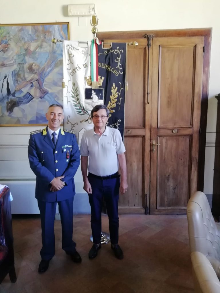 SANSEPOLCRO – Cordiale incontro questa mattina a Palazzo delle Laudi fra il sindaco Fabrizio Innocenti e il nuovo comandante provinciale della Guardia di Finanza, Walter Mazzei. Il primo cittadino ha ricevuto il colonnello Mazzei nel suo ufficio, intrattenendosi con lui per illustrare le caratteristiche del territorio tiberino, i suoi punti di forza e di debolezza, rivolgendo al neocomandante i migliori auguri di buon lavoro a beneficio dell’intera comunità e assicurando il pieno sostegno delle istituzioni.