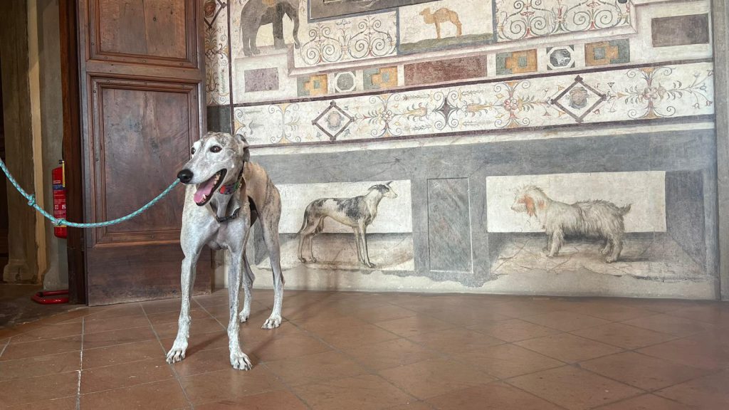 Città di Castello – a quattrozampe del ferragosto nei musei appena trascorso. I proprietari ieri alla Pinacoteca, che ha registrato un notevole afflusso di visitatori italiani e stranieri, giunti all’interno del salone “nobile” di Palazzo Vitelli alla Cannoniera, riccamente affrescato fa Gherardi e Cola Dell’Amatrice, con raffigurazioni di animali da compagnia, non hanno resistito alla tentazione di uno scatto accanto “all’antenato” da immortalare e da tenere fra i ricordi più cari. Botteghi e Guerri: “primo bilancio positivo di ferragosto che fa ben sperare per il futuro”