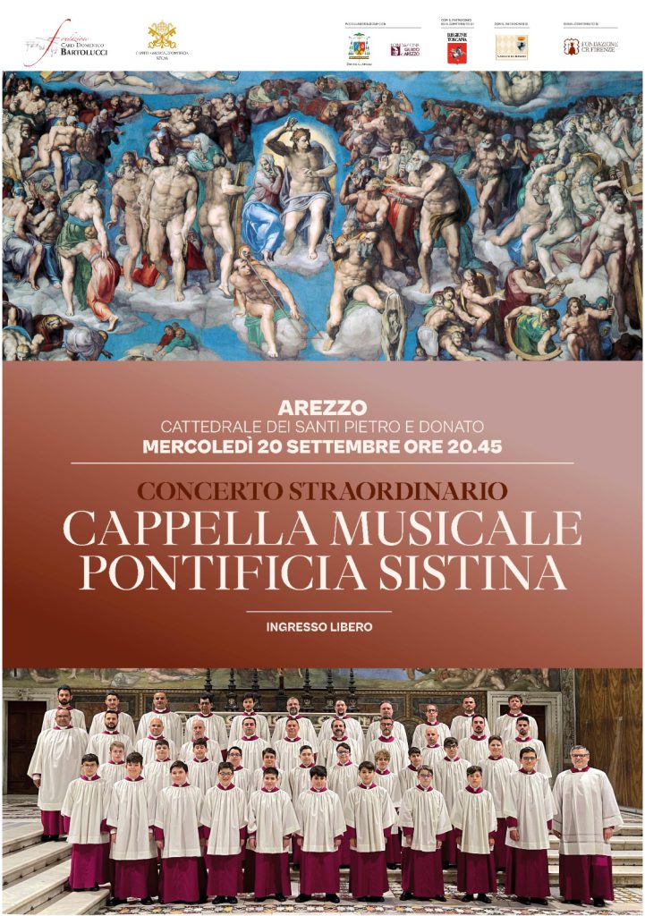 Il concerto è in programma mercoledì 20 settembre alle 20.45 in Cattedrale e viene trasmesso in diretta su Tsd, visibile in tutta la Toscana nel canale 85 e in streaming all’indirizzo www.tsdtv.it/live. La data aretina si inserisce all’interno di un tour che la Cappella sta compiendo nel mese di settembre in Toscana, nelle città di Firenze, Pistoia e Prato.