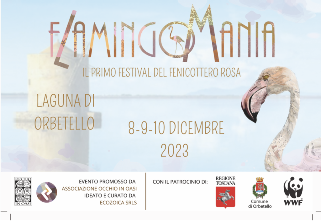 Si terrà nel Comune di Orbetello (Gr), nei giorni 8, 9 e 10 dicembre 2023, la prima edizione di “Flamingomania – Il festival del fenicottero rosa”, il primo evento italiano che ha l’iconico uccello dalle ali rosa come assoluto protagonista e simbolo. Co-protagonista dell’evento la laguna toscana di Orbetello, con le oasi WWF e la Riserva naturale regionale e statale. Un evento ideato dalla società di comunicazione ambientale Ecozoica e promosso e realizzato insieme all’associazione Occhio in Oasi.