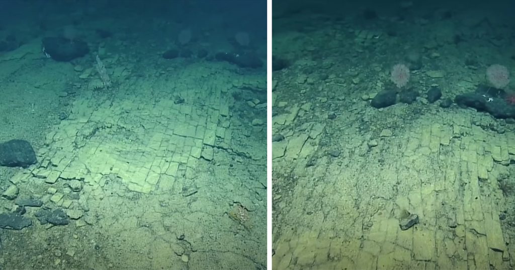 In un filmato diffuso dagli esperti, il team tenta di prelevare dei campioni con l’aiuto di un braccio robotico. Grazie a loro abile uso del robot, gli esperti hanno avuto l’opportunità di ispezionare più da vicino un ammasso di crosta di ferromanganese , un deposito minerale sedimentario marino costituito da ossidi di ferro e manganese. La muratura era in realtà il risultato di geologia vulcanica che ha fratturato la roccia in modo curiosamente uniforme. “Quella che può sembrare una ‘strada di mattoni gialli’ verso la mitica città di Atlantide è in realtà un esempio di antica geologia vulcanica!” ha spiegato EVNautilus. Il team ha identificato la roccia come ialoclastite, un tipo di roccia vulcanica trovata dove le eruzioni ad alta energia hanno depositato frammenti nel fondo del mare. Il motivo per cui sembra così simile a un mattone è che si è fratturato a causa del ripetuto riscaldamento e raffreddamento mentre si verificavano ulteriori eruzioni nella regione.