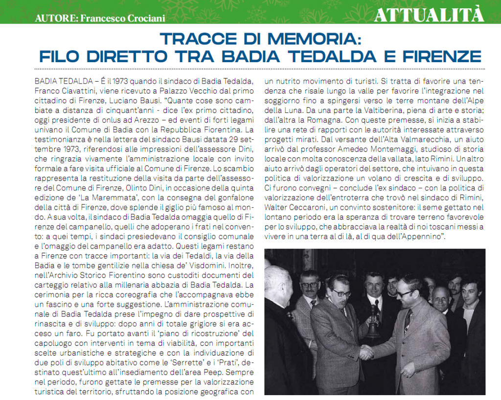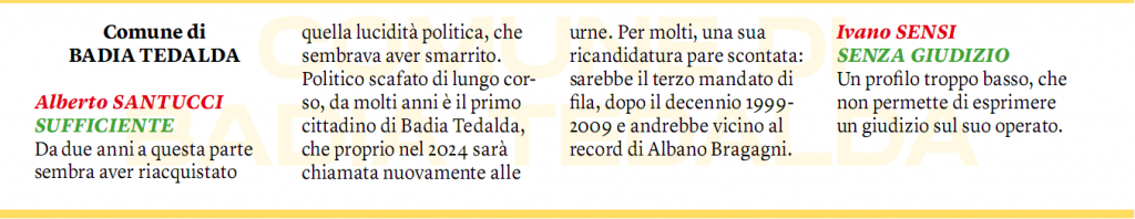 La pagella amministrativa del Sindaco di Badia Tedalda Alberto santucci