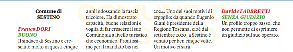 La pagella amministrativa del Sindaco di Sestino: Franco Dori