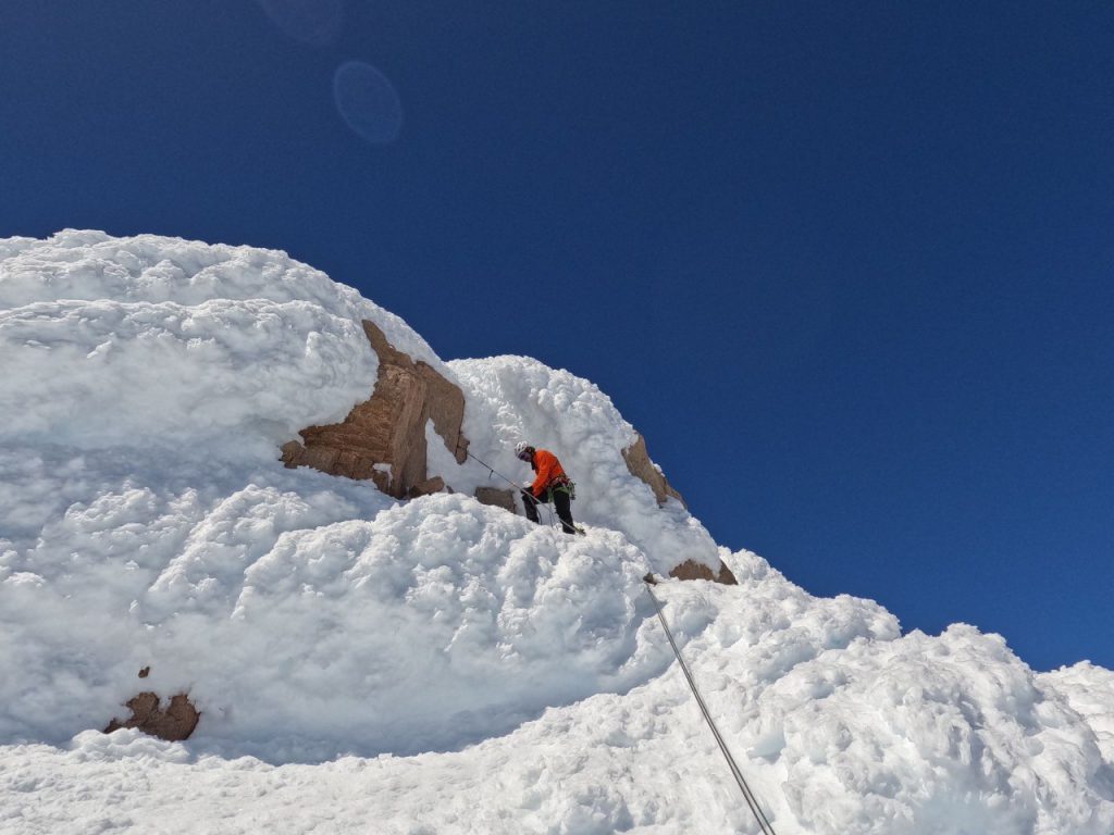 I due alpinisti hanno aperto una nuova via, lungo lo spigolo ovest, con uno sviluppo di circa 900 metri, di cui 300 nel canale nevoso iniziale e altri 600 in arrampicata. Il grado di difficoltà arrivava fino al 6a+ su roccia e M6+ su misto. Si tratta della degna conclusione di un lungo percorso di esplorazione e ricerca che, negli ultimi anni, li ha visti tornare ben quattro volte sul grande ghiacciaio patagonico.