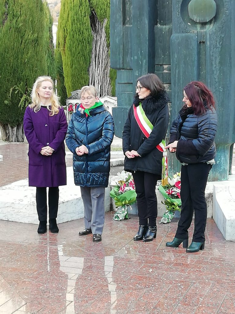SANSEPOLCRO – Partecipata cerimonia presso il Cimitero Monumentale del 50esimo anniversario dell’edificazione del Sacrario degli Slavi, inaugurato il 15 dicembre del 1973. L’evento, curato dalla locale sezione dell’Anpi, dal Museo della Resistenza e dal Comune di Sansepolcro ha registrato la presenza di una folta delegazione della Repubblica di Slovenia, con in testa i responsabili dell’ambasciata del Paese balcanico. A rappresentare Palazzo delle Laudi l’assessore Francesca Mercati, mentre per il Comune di Anghiari c’era l’assessore Ilaria Lorenzini.