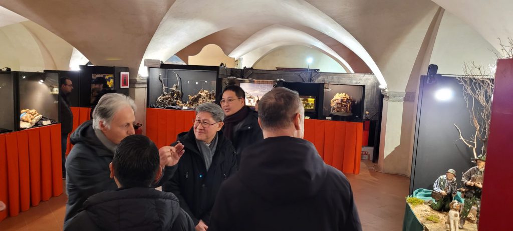 CITTA DI CASTELLO – La consegnerà al Santo Padre il cardinale Luis Antonio Gokim, Pro-Prefetto per la Sezione per la prima evangelizzazione e le nuove chiese, Arcivescovo Metropolita emerito di Manila (Filippine), a cui il Presidente dell’Associazione Amici del Presepio, “Gualtiero Angelini”, di Città di Castello, cavalier Lucio Ciarabelli, ha fatto dono del primo numero del catalogo con tanto di dedica a nome della città e comunità tifernate. Il cardinale Gokim, assieme ad un gruppo di religiosi ha visitato la mostra rimanendo particolarmente colpito dalla bellezza delle opere e dal luogo dove si svolge.