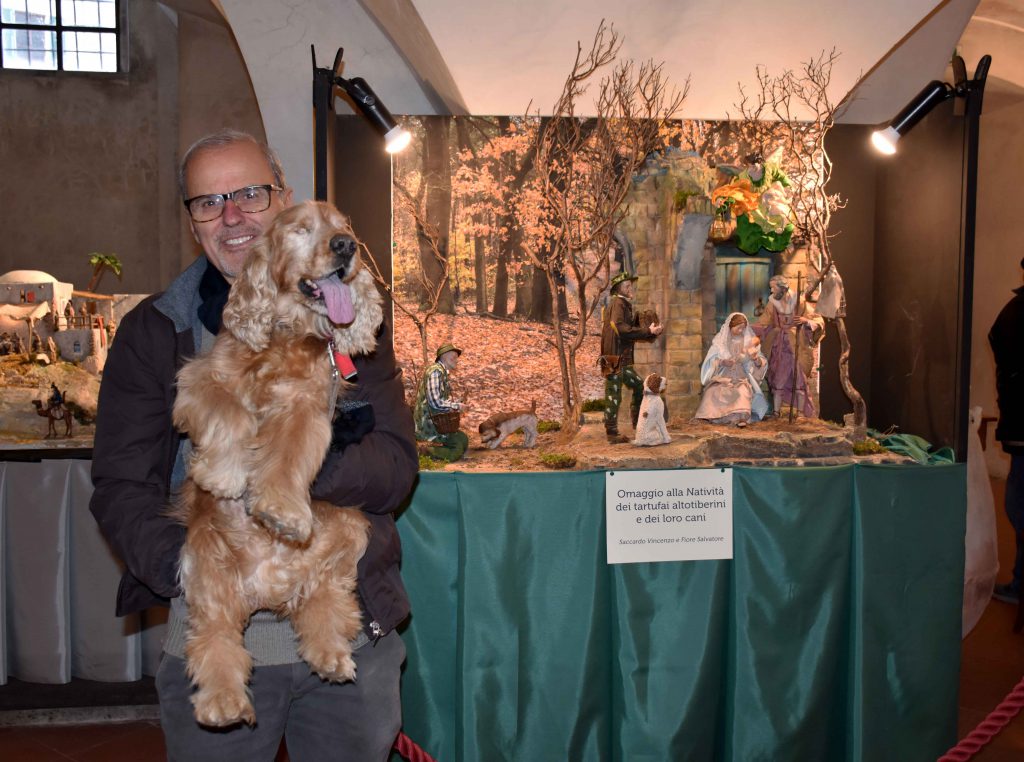 CITTA’ DI CASTELLO – La bella storia del cane cieco davanti al presepe dei “tartufai” che racconta la sua storia. Leo il cocker spaniel che non vede più ma grazie al fiuto impareggiabile scova ancora tartufi record e riesce a trasmettere sensazioni uniche al proprietario, esperto “cavatore”, Lorenzo Tanzi, che lo segue da sempre con amore.
