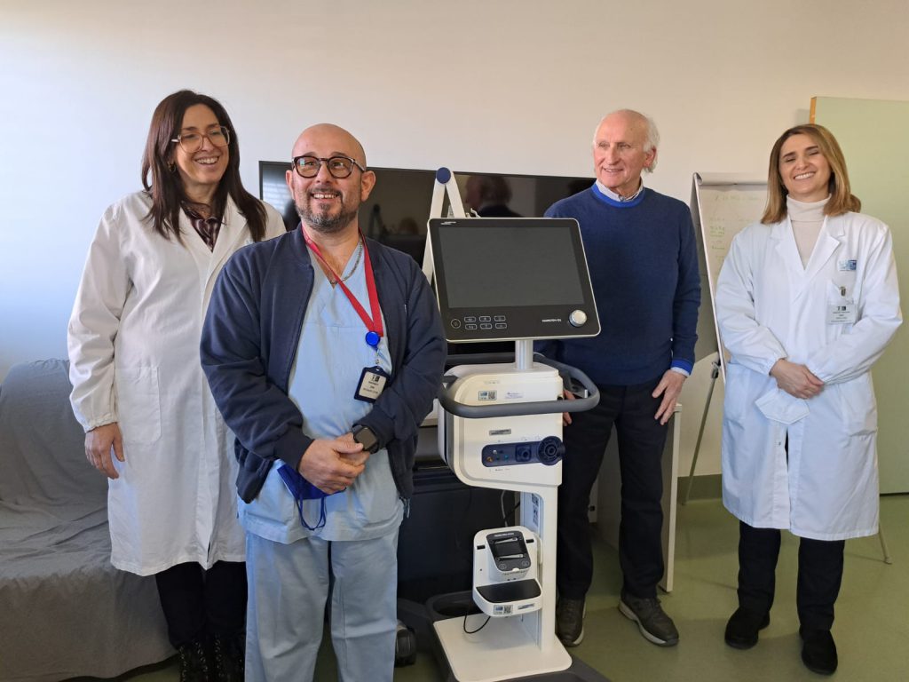 Questo apparecchio, inoltre, ha una ulteriore funzione che lo rende top di gamma. È, infatti, dotato di strumentazione diagnostica che, oltre ad aiutare nella funzione respiratoria grazie alle modalità di ventilazione più all’avanguardia, consente di erogare terapie ed effettuare misurazioni facilitando la diagnosi su paziente Una strumentazione molto utile in questo particolare momento – dichiara la dr.ssa Raffaella Pavani, direttore UOC Anestesia e rianimazione Arezzo – a fronte di polmoniti e riacutizzazioni di malattie respiratorie croniche, di polmoniti da covid e da influenza. Questo ventilatore è un aiuto concreto al lavoro che svolgiamo ogni giorno in terapia intensiva». Due barelle elettriche idonee al trasporto di persone obese, un ecografo, due monitor multiparametrici e un defibrillatore per un valore complessivo di quasi 90 mila euro, invece, sono i dispositivi che Calcit Arezzo ha donato alla Sala Rossa del Pronto Soccorso dell’ospedale aretino San Donato. Il defibrillatore donato da Calcit permette di comunicare i dati dell’elettrocardiogramma da domicilio a Centrale Operativa 118 attraverso modem interno, permettendo di rilevare eventuali alterazioni e indirizzare il paziente verso la centralizzazione primaria in emodinamica. «Si tratta di dispositivi di ultima generazione, imprescindibili nel lavoro del reparto di Emergenza e Urgenza – dichiara il dr. Maurizio Zanobetti, responsabile Uoc Medicina e Chirurgia d’urgenza Pronto soccorso Ospedale di Arezzo – Poter contare su questi dispositivi, che vanno ad aggiungersi a quelli in dotazione al pronto soccorso, è importante nel lavoro che medici e infermieri svolgono quotidianamente in questo reparto». Ancora una volta dobbiamo ringraziare il Calcit di Arezzo per l’attenzione rivolta alle esigenze dei pazienti e di quanti lavorano nel prendersi cura di essi – dichiara la dr.ssa Barbara Innocenti, Direttrice PO Arezzo – Il Calcit e il suo Presidente, Giancarlo Sassoli, sono sempre in ascolto e sensibili alle necessità del nostro ospedale per garantire la disponibilità di tecnologie all’avanguardia e fondamentali per assicurare le migliori cure ai pazienti, anche i più complessi e critici». «Con la donazione di oggi al Pronto soccorso si è concretizzato formalmente un progetto iniziato nei primi mesi del 2023 – dichiara Giancarlo Sassoli, presidente Calcit Arezzo -. La dotazione tecnologica confluita nella “Sala Rossa Calcit” migliorerà ancora di più i servizi a beneficio dei pazienti facilitando il lavoro degli operatori sanitari. Anche la donazione del ventilatore alla Terapia Intensiva, che si aggiunge a quello che avevamo donato nel 2022, grazie alle sue particolari caratteristiche porterà beneficio ai pazienti in terapia. Un grazie va ai cittadini che con i loro contributi permettono di sostenere questi investimenti a beneficio di tutti».