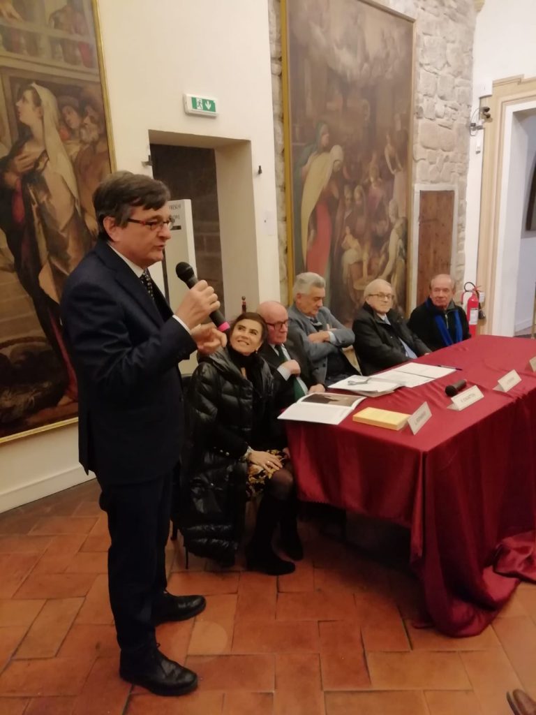 A fare gli onori di casa il sindaco Fabrizio Innocenti e l’assessore alla cultura Francesca Mercati, assieme al sindaco Claudio Marcelli di Pieve S.Stefano, terra originaria di Fanfani. Prima del taglio del nastro della bella e ricca esposizione, esaltata dalla collocazione scelta per l’occasione, un interessante convegno sulla figura e l’opera dello statista. Apprezzate le relazioni del nipote Giuseppe Fanfani, di Franco Ciavattini dell’associazione “Kairos”, di Liletta Fornasari che ha curato il catalogo, del professor Fiorenzo Silvestri che ha fornito gran parte delle opere presenti e facenti parte della sua collezione privata. A chiudere l’intervento di Pierluigi Castagnetti, deputato per cinque legislature alla Camera, europarlamentare, ultimo segretario del Partito Popolare Italiano, che ha tracciato un intenso ritratto della poliedrica personalità e attività di Amintore Fanfani.