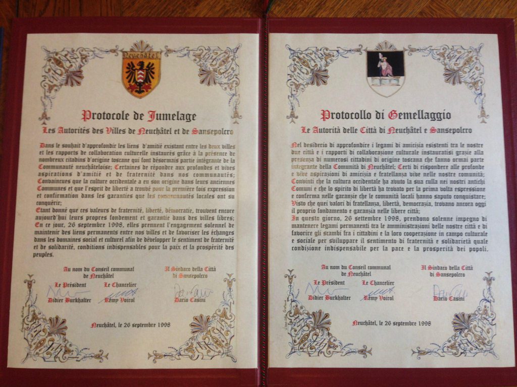 Ambasciatore del felice gemellaggio tra Sansepolcro e Neuchâtel dal 1995, il Cavaliere ha contribuito a promuovere l’unione e la promozione di entrambe le città. Grazie alla sua visione e al suo impegno, si è instaurato un legame duraturo e significativo tra i due territori, arricchendo la nostra vita culturale e sociale e promuovendo lo scambio e la comprensione tra le comunità. Polistrumentista di altissimo livello, il Cav. Perla, dopo aver portato la sua musica in varie città europee, negli anni ’60 si è stabilito in Svizzera. Nel 1995 poi, dopo un impegnativo iter procedurale, grazie a lui è stato siglato il gemellaggio fra le città di Sansepolcro e Neuchâtel, a suggellare una profonda unione sia personale che culturale fra le due realtà. Il Comune di Sansepolcro desidera dunque esprimere la più sincera gratitudine al Cav. Vittorio Perla per il suo straordinario contributo e per l’esempio di dedizione e spirito di servizio che ha sempre dimostrato. L’omaggio avrà luogo nella Sala consiliare di Palazzo delle Laudi, lunedì 6 maggio alle 10.30 e sarà un’occasione per celebrare la sua vita e i suoi successi, oltre che per ringraziarlo per tutto ciò che ha fatto per la nostra città.