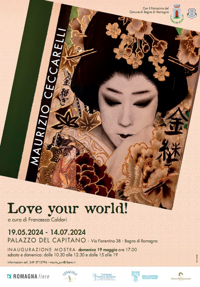 Palazzo del Capitano – Bagno di Romagna 19 maggio – 14 luglio 2024 Love your world! MAURIZIO CECCARELLI A cura di Francesca Caldari Inaugurazione: Domenica 19 maggio ore 17.00 alla presenza delle autorità Riparte la stagione espositiva “Bagno d’Arte 2024”: Palazzo del Capitano ospita dal 19 maggio al 14 luglio 2024 la mostra Love your world! di MAURIZIO CECCARELLI, promossa e patrocinata dal Comune di Bagno di Romagna e curata da Francesca Caldari.
