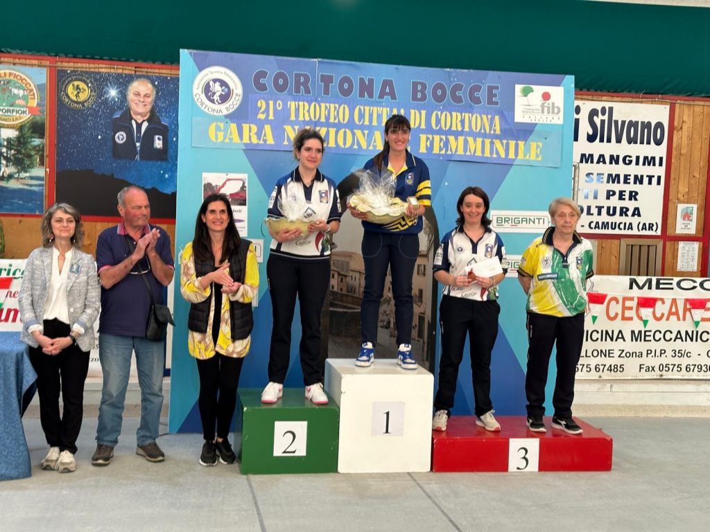 Ad aggiudicarsi la manifestazione è stata Annunziata Gattaponi (Bocc. C. di Bastia) che in finale ha battuto per 12-7 Lorita Leonori (ASD Bocce Arezzo). Terzo posto per Giulia Pierozzi (ASD Cortona Bocce) e Ketty Tacconi (ASD Prato Bocce). Domenica 2 giugno a Cortona presso il Bocciodromo Comunale si è svolto il 21° Trofeo Città di Cortona – Memorial E. Basanieri, gara Nazionale individuale Femminile organizzata da Cortona Bocce. Alla gara hanno preso parte 45 atlete di cat. A-B-C. A vincere il trofeo è stata Chiara Gasperini (Lucrezia), che in finale ha battuto 12-6 l’atleta Toscana Rachele Maggio (ASD Cortona Bocce). Terzo posto per Giulia Pierozzi (ASD Cortona Bocce) e Lorita Leonori (ASD Bocce Arezzo). Alle premiazioni erano presenti l’Assessore allo Sport del Comune di Cortona Silvia Spensierati, la famiglia Basanieri e il Delegato Territoriale FIB Arezzo Siena Armando Martini. Un weekend molto positivo per le atlete Toscane, che hanno ottenuto ottimi risultati, in particolare per Rachele Maggio, Giulia Pierozzi, Lorita Leonori e Ketty Tacconi.