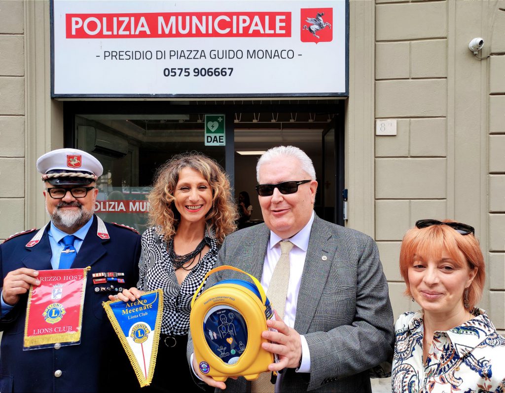 Il presidio della polizia municipale di piazza Guido Monaco si dota di un defibrillatore semi-automatico DAE, dono del Lions club Arezzo Host e del Lions club Arezzo Mecenate.