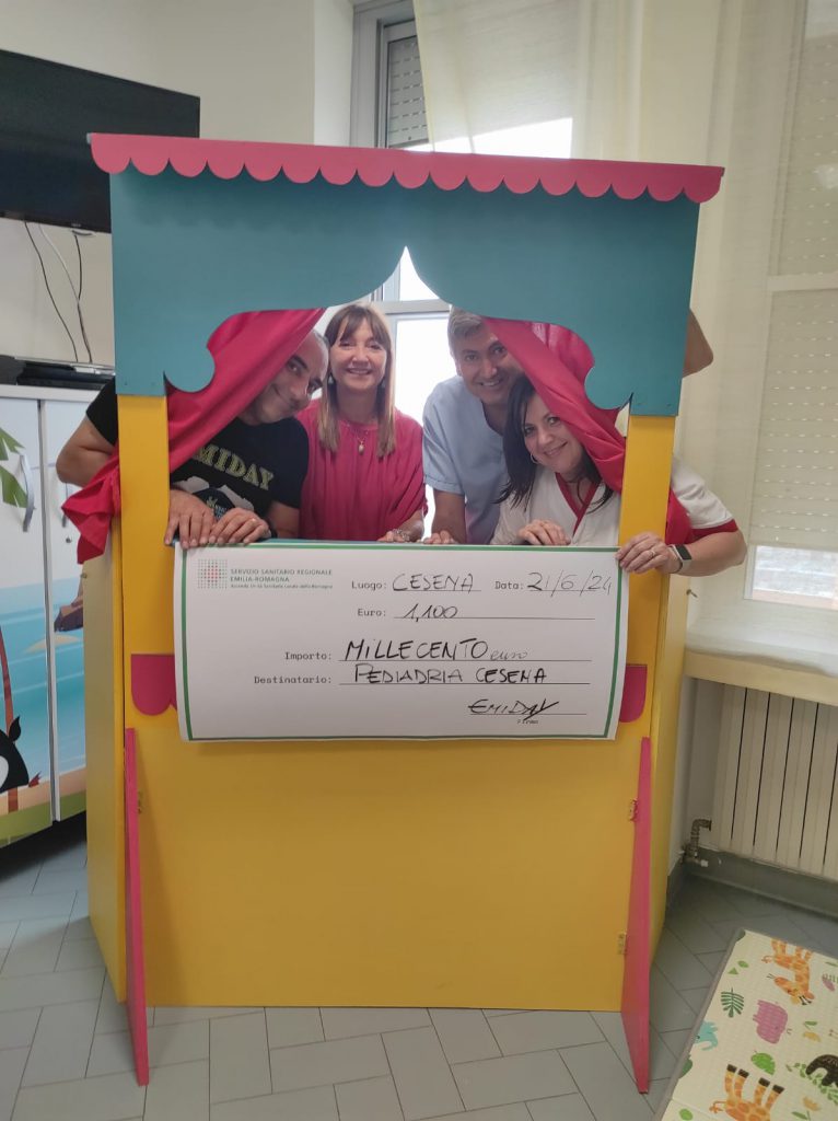 Nella mattinata di oggi si è svolta la consegna da parte di Nicola Rossi al direttore della Pediatria del Bufalini, Marcello Stella e alla coordinatrice Alice Rasi. Il dottor Stella ringrazia per l’importante donazione che si ripete negli anni e che è destinata a dare continuità ai progetti di “Pediatria a misura di bambino” tra cui l’arte terapia in corsia, la musicoterapia, la clown terapia, dedicati ai piccoli pazienti.La realizzazione dell’evento è stato possibile grazie al contributo dell’ Associazioni Mare futuro e Amare San Mauro e il sostegno di: Amadori Group, Cappelli Sas di De Cono Antonio, la ditta Camac, il comitato locale di Cesenatico della Croce Rossa Italiana, Ulisse con il suo food truck Da Mengo, i clown di corsia dell’associazione L’aquilone di Iqbal, la ditta MM gastecnology, Tipografia CM di Cesena, le band che hanno suonato e tutti i volontari che hanno reso possibile questa serata benefica ricordando Emiliano.