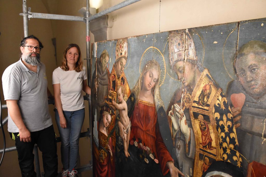 E Campus tramite Art Bonus. Il laboratorio mobile MOLAB dell’Infrastruttura E-RIHS del CNR, Centro Nazionale Ricerche, insieme all’Università degli Studi Di Perugia nei giorni scorso ha avviato una campagna di indagini diagnostiche non invasive sulla Pala, con l’utilizzo di strumentazione all’avanguardia sviluppate dai gruppi di ricerca coinvolti e che permetterà di raccogliere dati scientifici senza l’utilizzo di prelievi di materia originale. I dati raccolti saranno da apporto alla messa a punto dell’intervento di pulitura, grazie alla conoscenza dei materiali costitutivi e di degrado, in maniera da individuare l’intervento più adatto al tipo di materiali originariamente usati. La campagna è stata condotta da Francesca Rosi, Aldo Romani, Laura Caterchini e Sara Mattana. Per l’assessore alla Cultura, Michela Botteghi, tratta di un “progetto strategico e all’avanguardia nella valorizzazione del patrimonio artistico della città, che ha preso il via nell’Anno Signorelliano e che nel prosieguo del lavoro sta rivelando della Pala dettagli e informazioni fondamentali anche per i successivi studi su questa opera, determinando ulteriori apporti anche ai fini dell’attribuzione. Dobbiamo ringraziare i professionisti che hanno improntato questo progetto che coniuga progressi scientifici ad un arricchimento dell’offerta museale della Pinacoteca dato che al visitatore viene offerta anche la possibilità di seguire il restauro work in progress e di osservare da vicino le operazioni compiute sul dipinto. La Pinacoteca è al centro di attività di valorizzazione differenziate: l’Amministrazione comunale sta investendo su molti fronti”. Oltre al restauro, di recente sono state inaugurate le nuove Sale dell’Ala Contemporanea: la nuova Sala Nuvolo a cura dell’Archivio Nuvolo, la nuova Galleria Bartoccini, visibile anche in notturna da via della Cannoniera e la Event Room, spazio dedicato alle mostre temporanee in cui al momento è allestita, nell’ambito del percorso di visita, la mostra “Collezionismo tifernate: Pistoletto, Dottori e gli altri del Lascito Pillutu”, che espone, per la prima volta fuori dallo Studio Pillitu-Meroni, opere di Pistoletto, Dottori, Schifano, Cagli e Derigù.