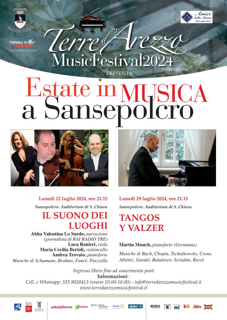 Due concerti a Sansepolcro Organizzato dall’Associazione “Opera Viwa” con il patrocinio e contributo di MIC, Ministero della Cultura, Regione Toscana Settore Spettacolo e il patrocinio della Provincia di Arezzo, il Festival arriva quest’anno alla sua 19° edizione e farà tappa a Sansepolcro con ben due appuntamenti da non perdere grazie al sostegno del Comune di Sansepolcro e il supporto organizzativo degli Amici della Musica.