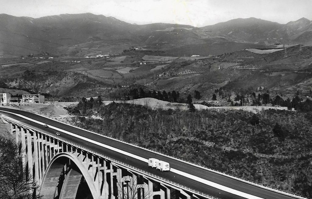 Nella costruzione dell’Autostrada del Sole, il tratto più complesso fu quello appenninico tra Bologna e Firenze. In questa tratta possiamo infatti trovare le costruzioni più ardite dal punto di vista tecnico e architettonico.Il viadotto Aglio, di 440 metri a nord di Barberino di Mugello è sicuramente una di queste, un capolavoro di leggerezza ed eleganza, con la sua arcata centrale con una luce di 165 metri.I lavori durarono due anni (1957-59). Il cantiere fu spettacolare al punto da diventare nel 1960 protagonista del documentario Viadotto sull’Aglio, diretto da Carlo Nebiolo.Nella centina per la costruzione del viadotto, vennero impiegati in tutto 65mila giunti e 89.700 metri di tubi. La costruzione del ponte sul Po, progettato da Silvano Zorzi. Fu collaudato il 4 e 5 giugno del 1959, facendovi transitare 10 carri armati e 20 autocarri.