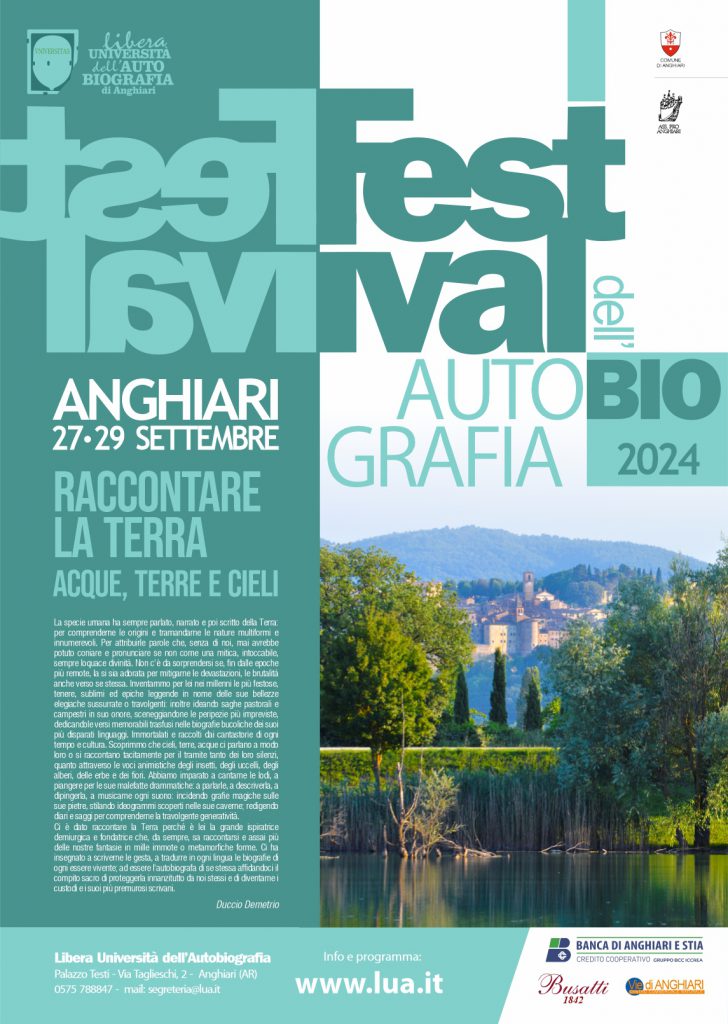 Il Festival dell’Autobiografia ad Anghiari dal 27 al 29 settembre Si avvicina l’appuntamento con il Festival dell’Autobiografia 2024, in programma ad Anghiari (provincia di Arezzo) dal 27 al 29 settembre, grazie come sempre all’organizzazione della Libera Università dell’Autobiografia. “Raccontare la Terra” è il titolo di questa edizione che affronterà il tema dell’ambiente dalla prospettiva della narrazione ecologica, auto e bio-grafica, affidandosi alle diverse declinazioni di indagine che verranno proposte da autorevoli personalità della cultura.